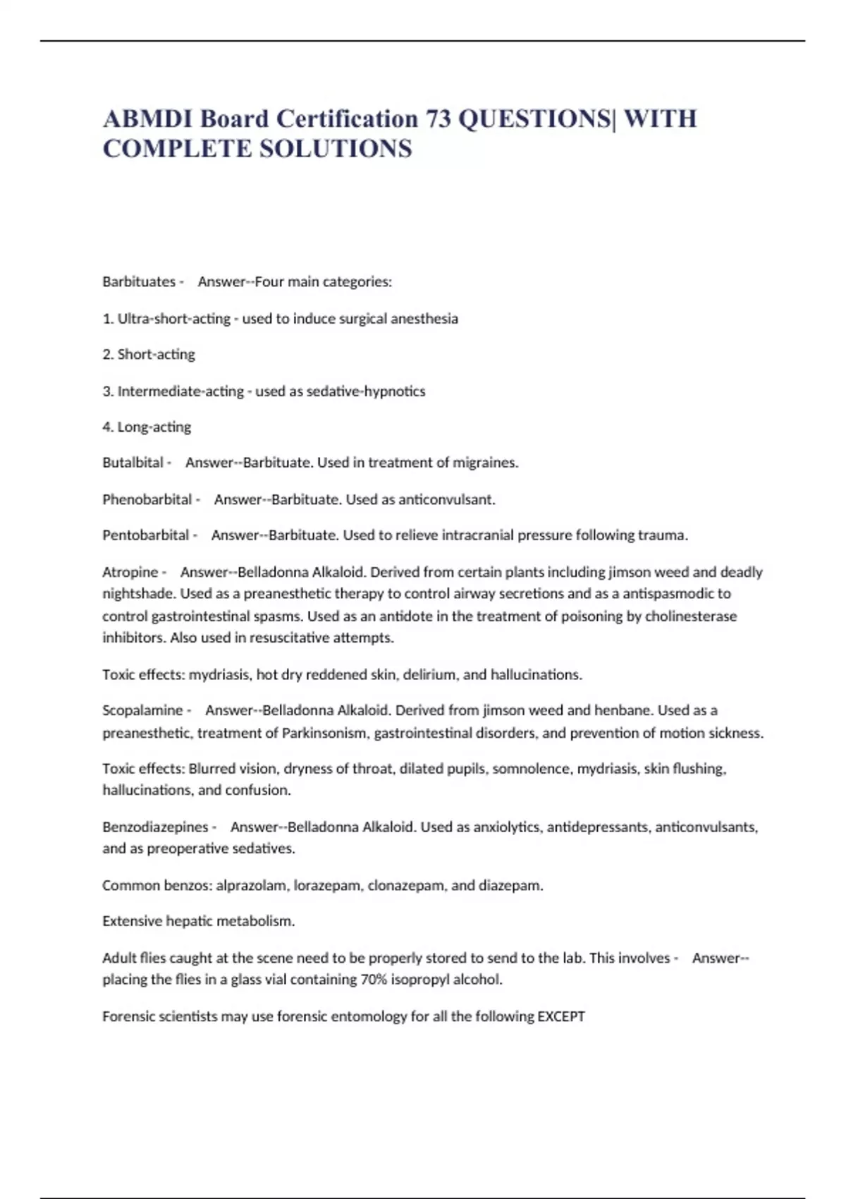 ABMDI Board Certification 73 QUESTIONS WITH COMPLETE SOLUTIONS.
