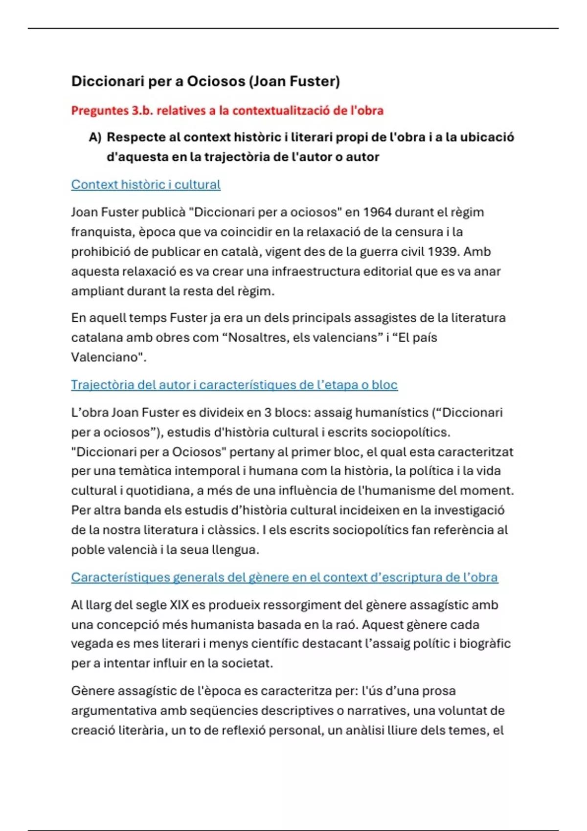 L’obra Joan Fuster es divideix en 3 blocs: assaig humanístics (“Diccionari