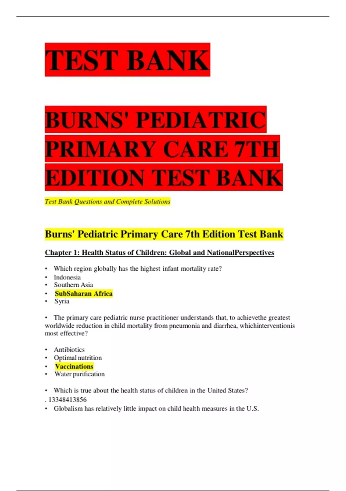 Burns' Pediatric Primary Care 7th Edition Test Bank