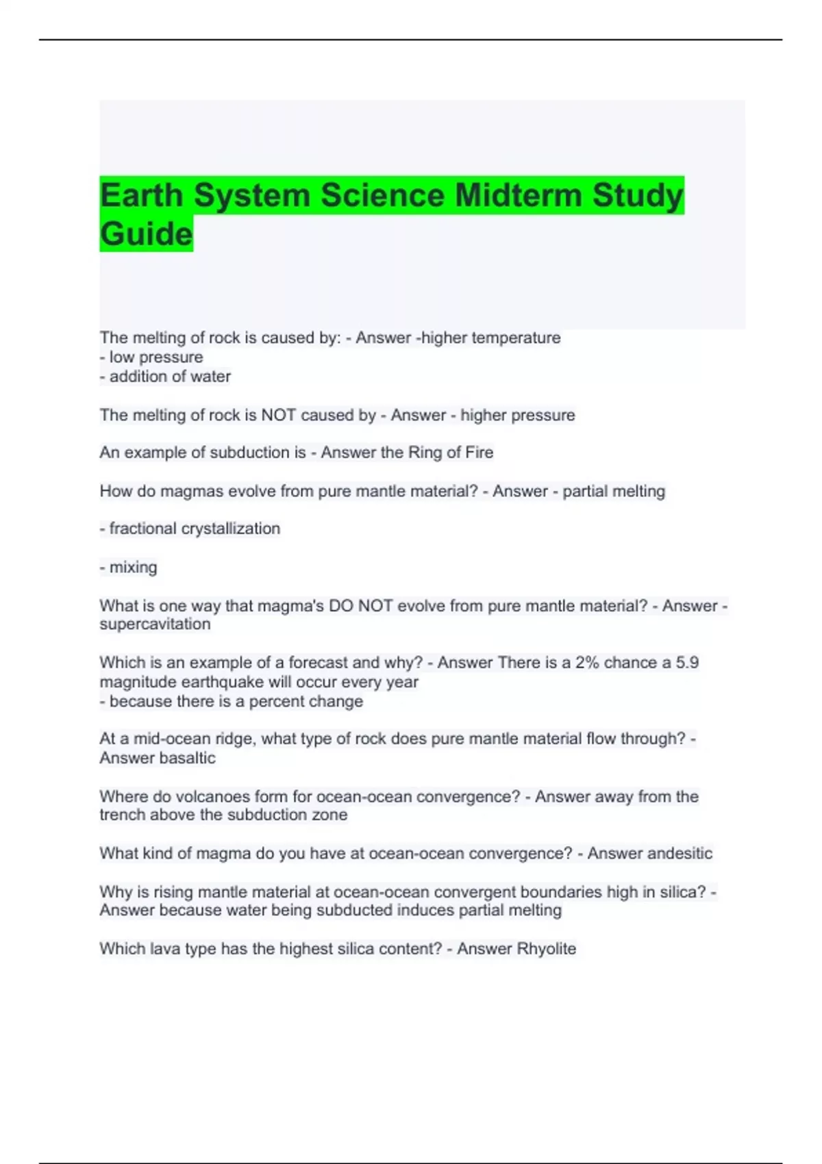 Earth System Science Midterm Study Guide with complete solutions