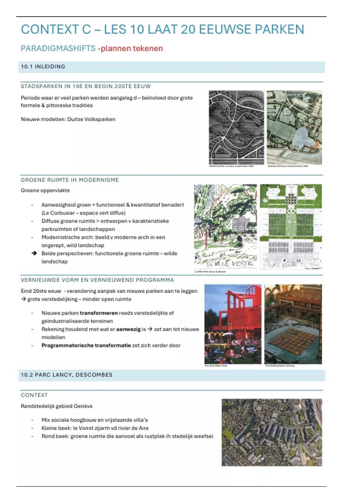 CONTEXT C – LES 10 LAAT 20 EEUWSE PARKEN