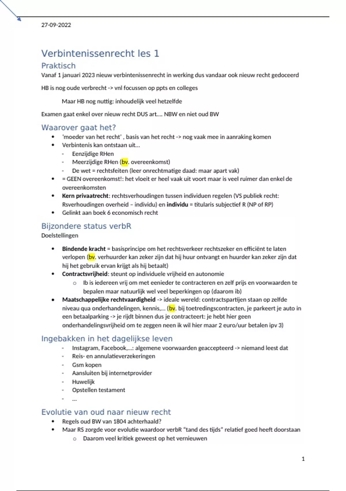 Vanaf 1 januari 2023 nieuw verbintenissenrecht in werking dus vandaar ook nieuw recht gedoceerd