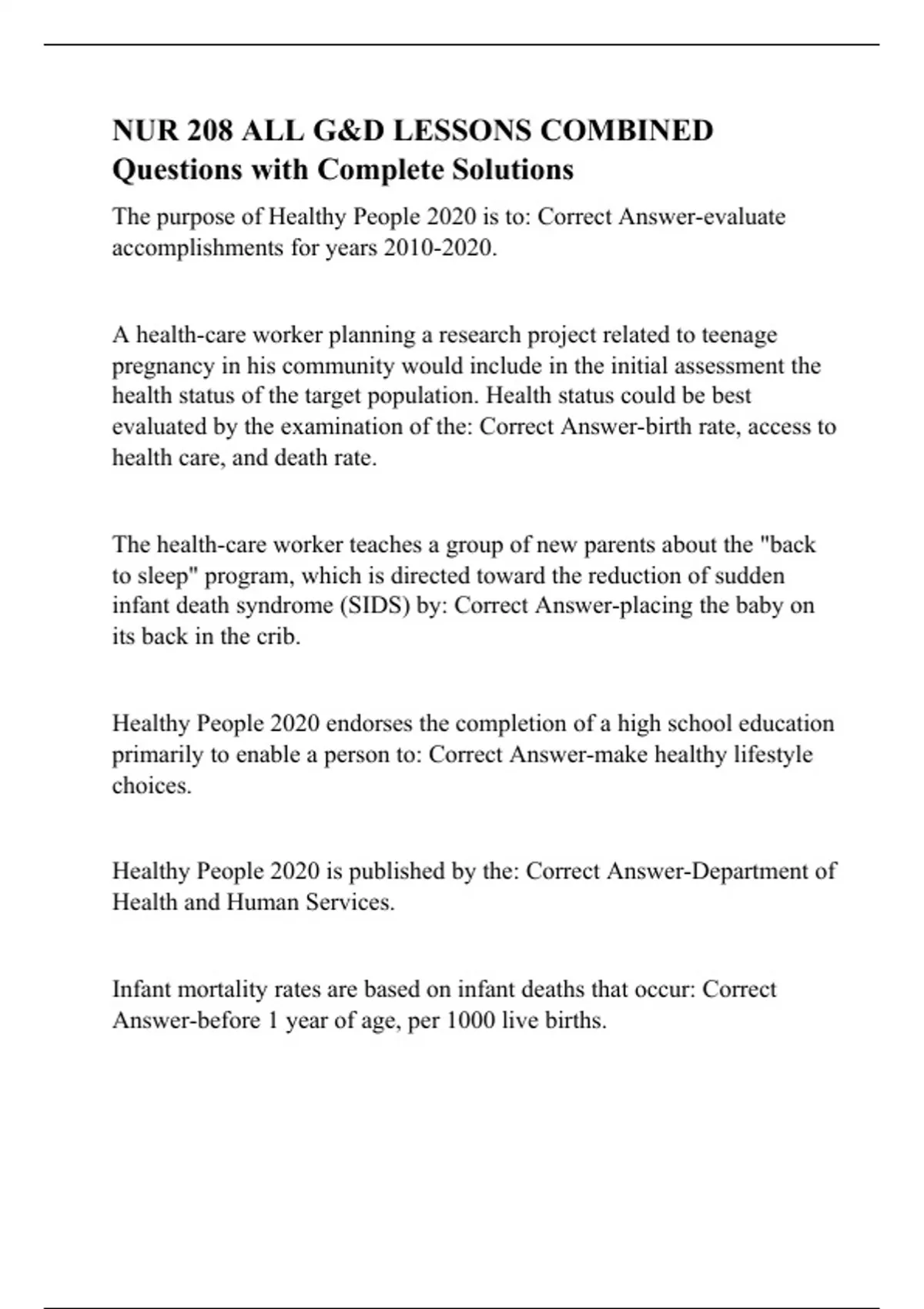 NUR 208 ALL G&D LESSONS COMBINED Questions with Complete Solutions