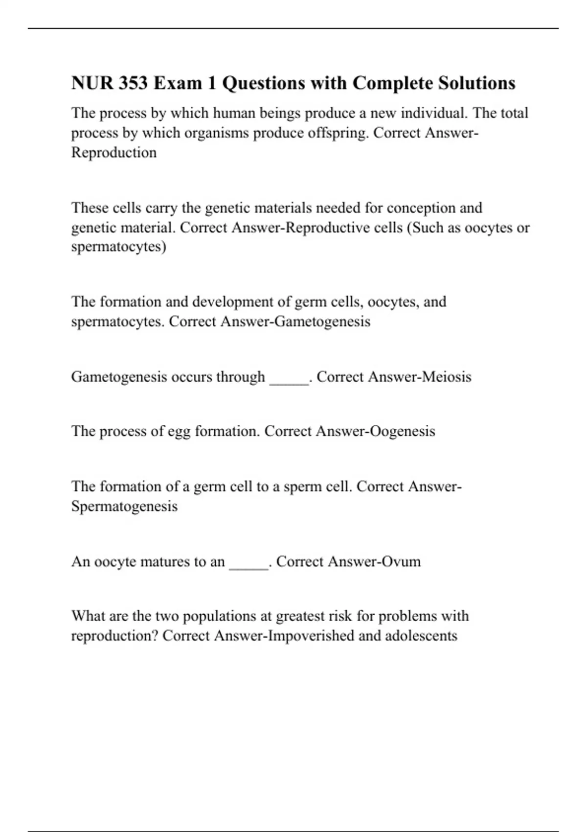 NUR 353 Exam 1 Questions with Complete Solutions
