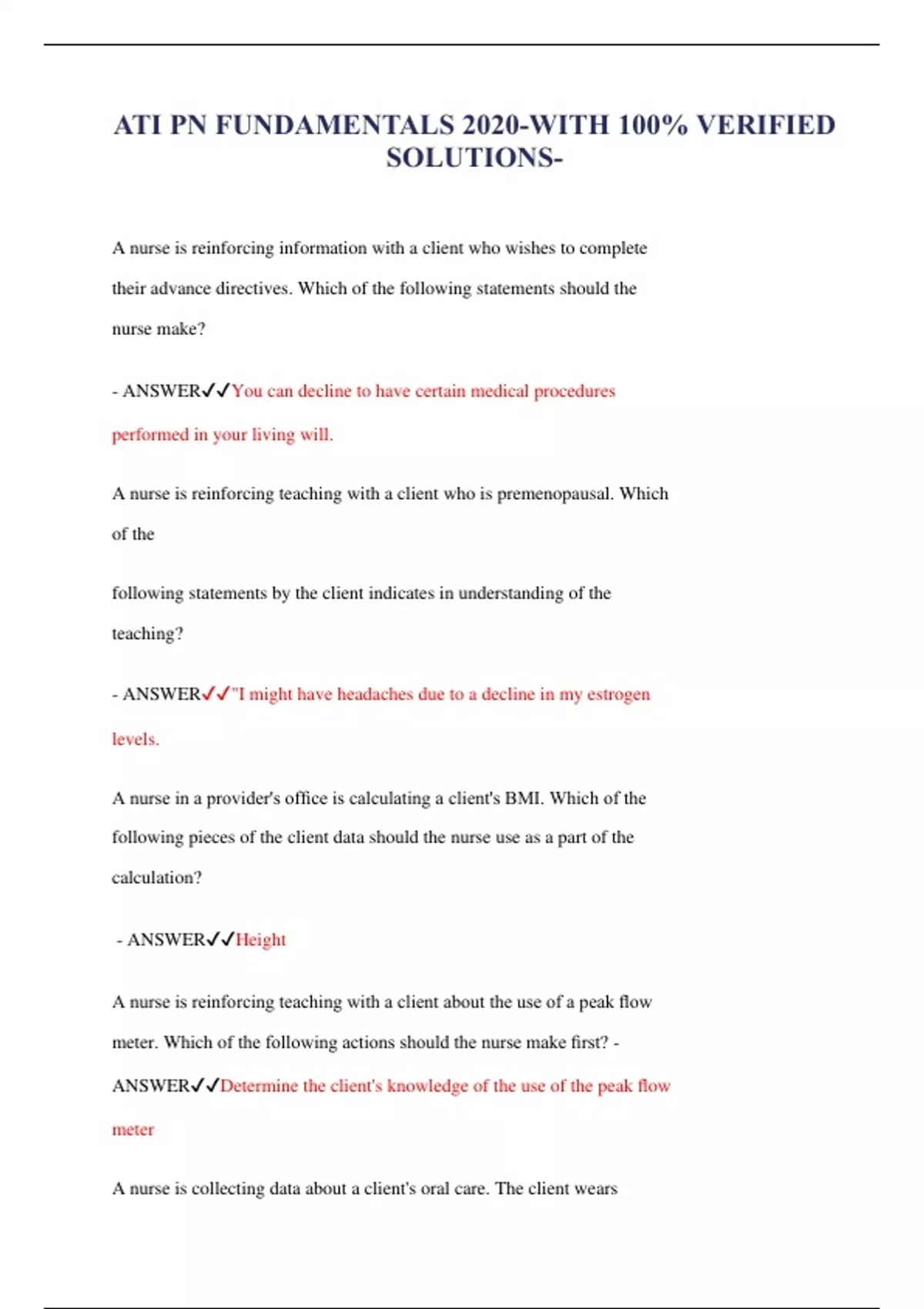 ATI PN FUNDAMENTALS 2020-WITH 100% VERIFIED SOLUTIONS-