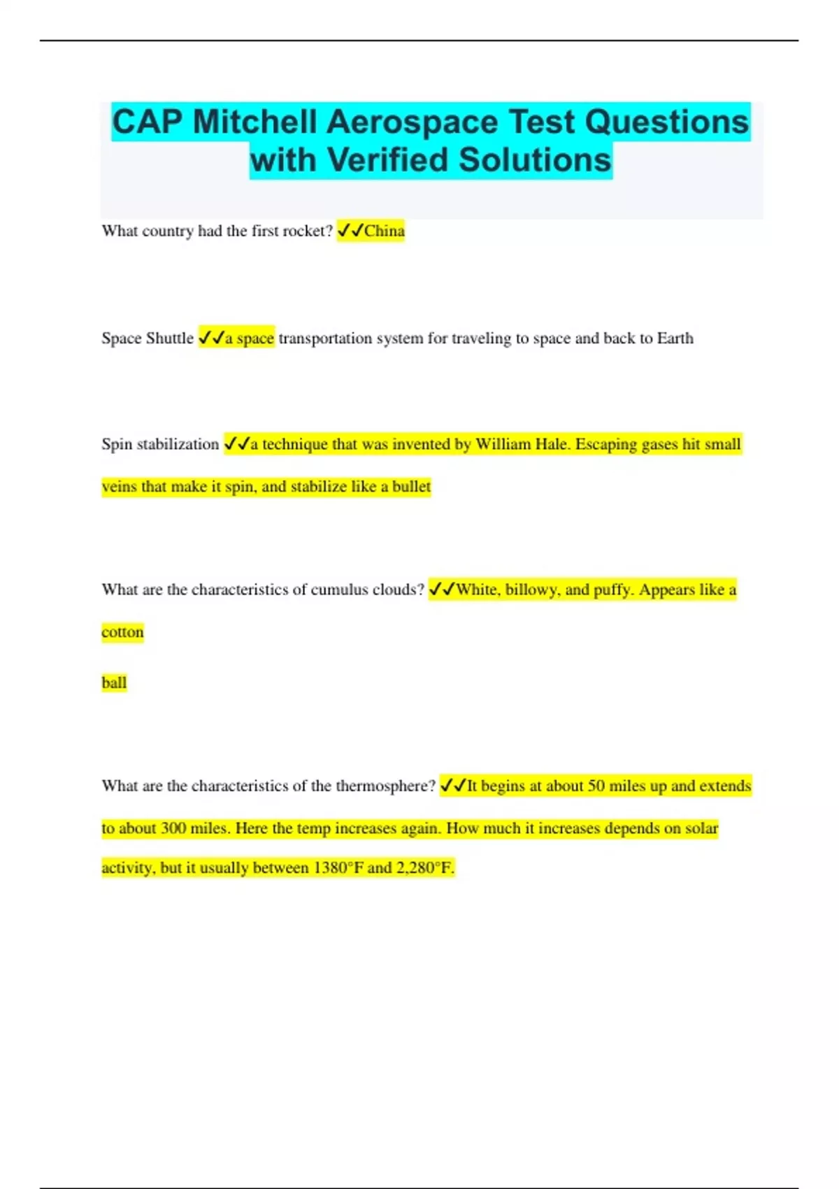 cap mitchell aerospace test questions with verifie