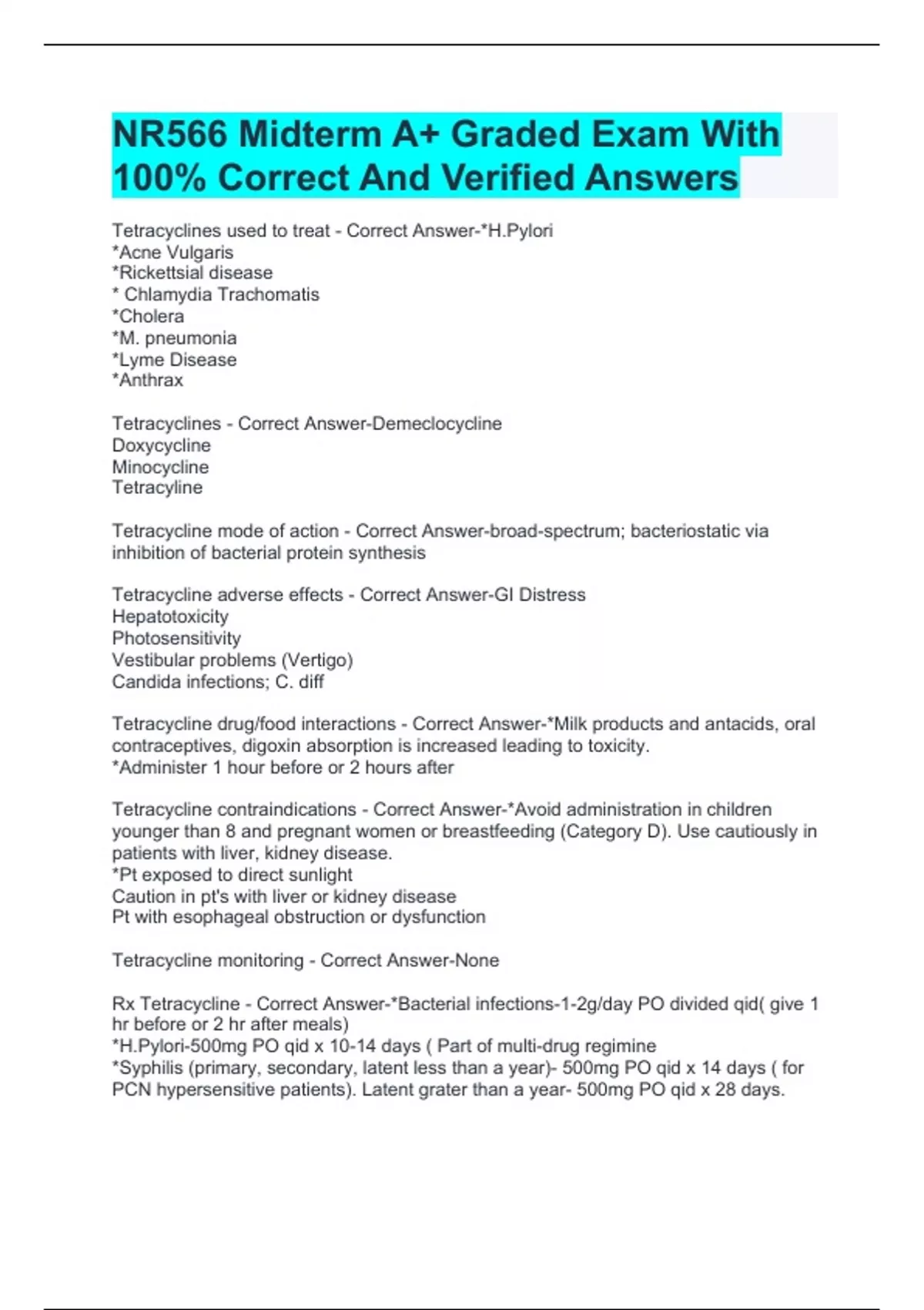 nr566 midterm a graded exam with 100 correct and