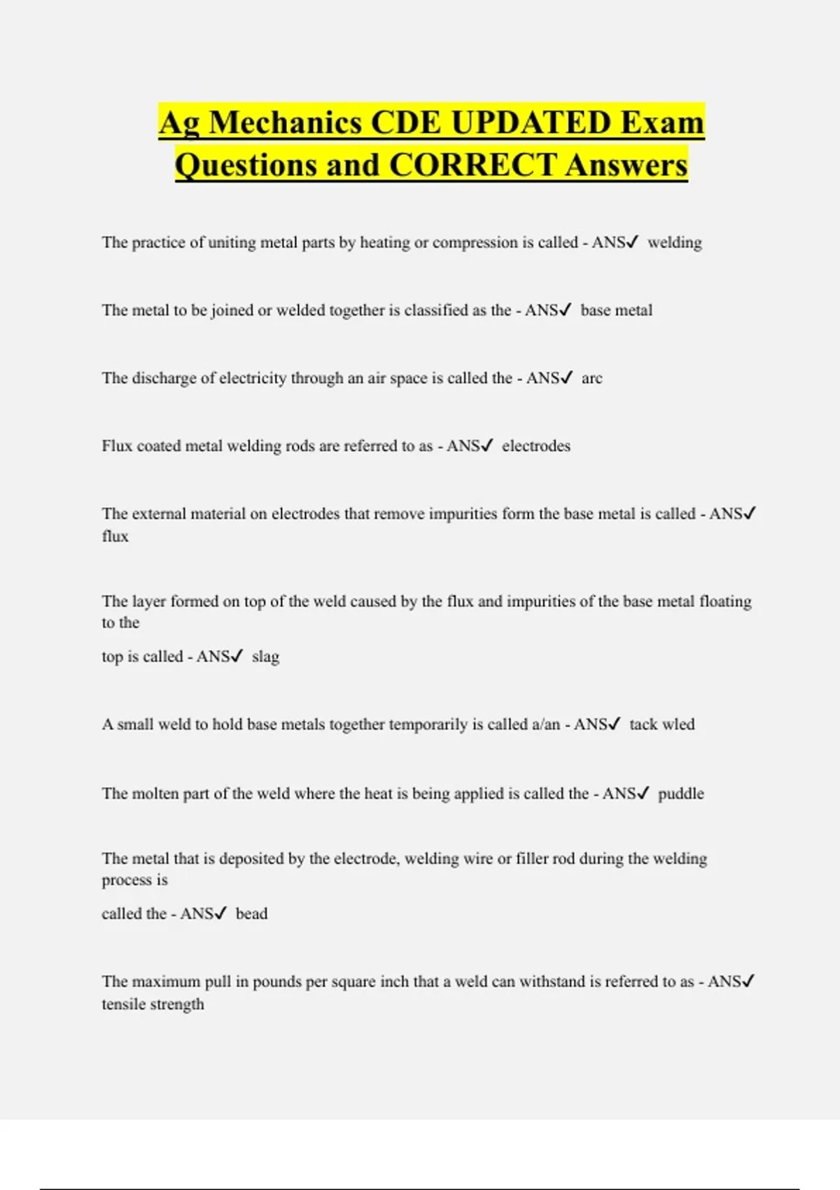 Ag Mechanics CDE UPDATED Exam Questions and CORRECT Answers