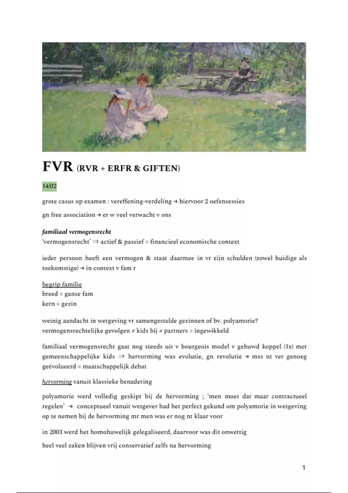 familiaal vermogensrecht was tot na WOII elitair (het gewone volk had gn vermogen) → was
