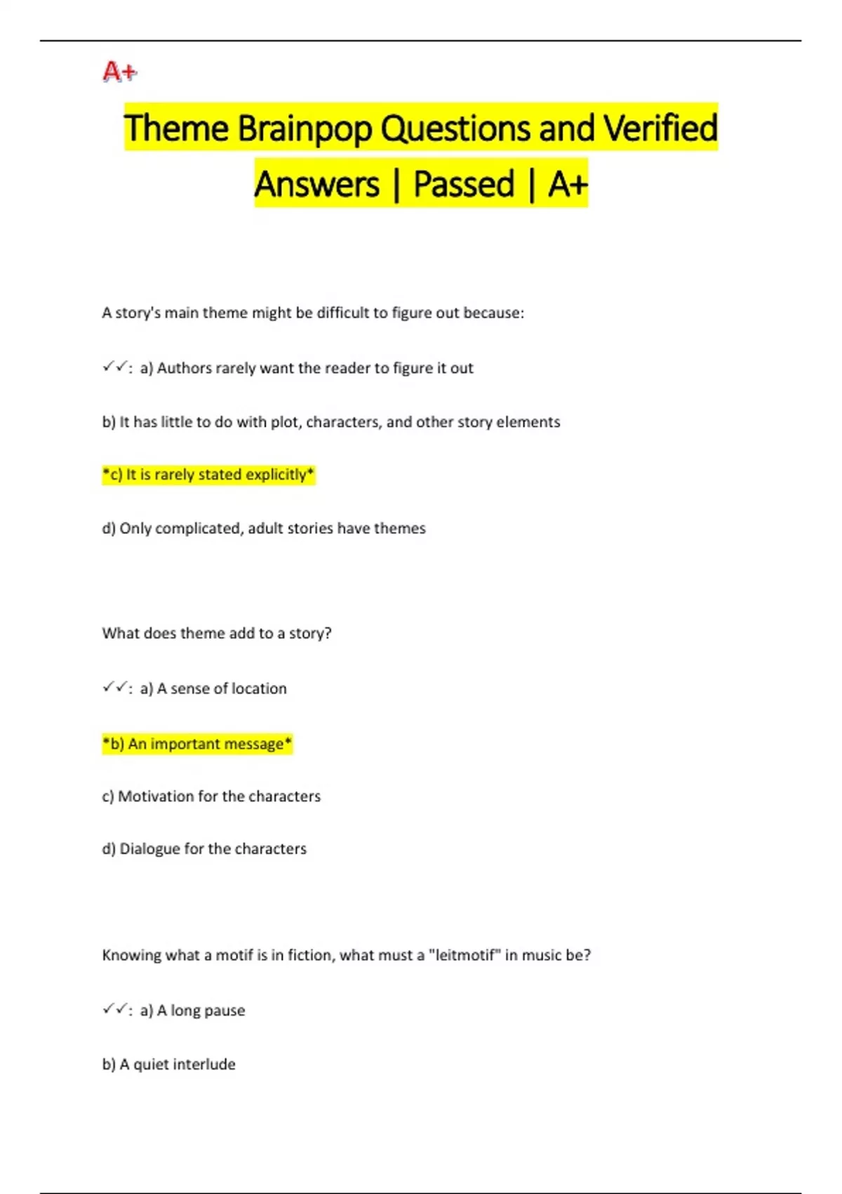 Theme Brainpop Questions and Verified Answers | Passed | A+