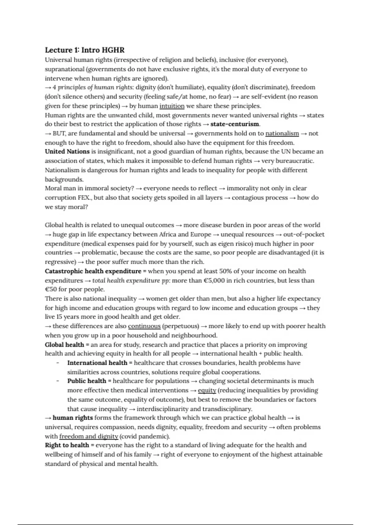 → human rights forms the framework through which we can practice global health → is