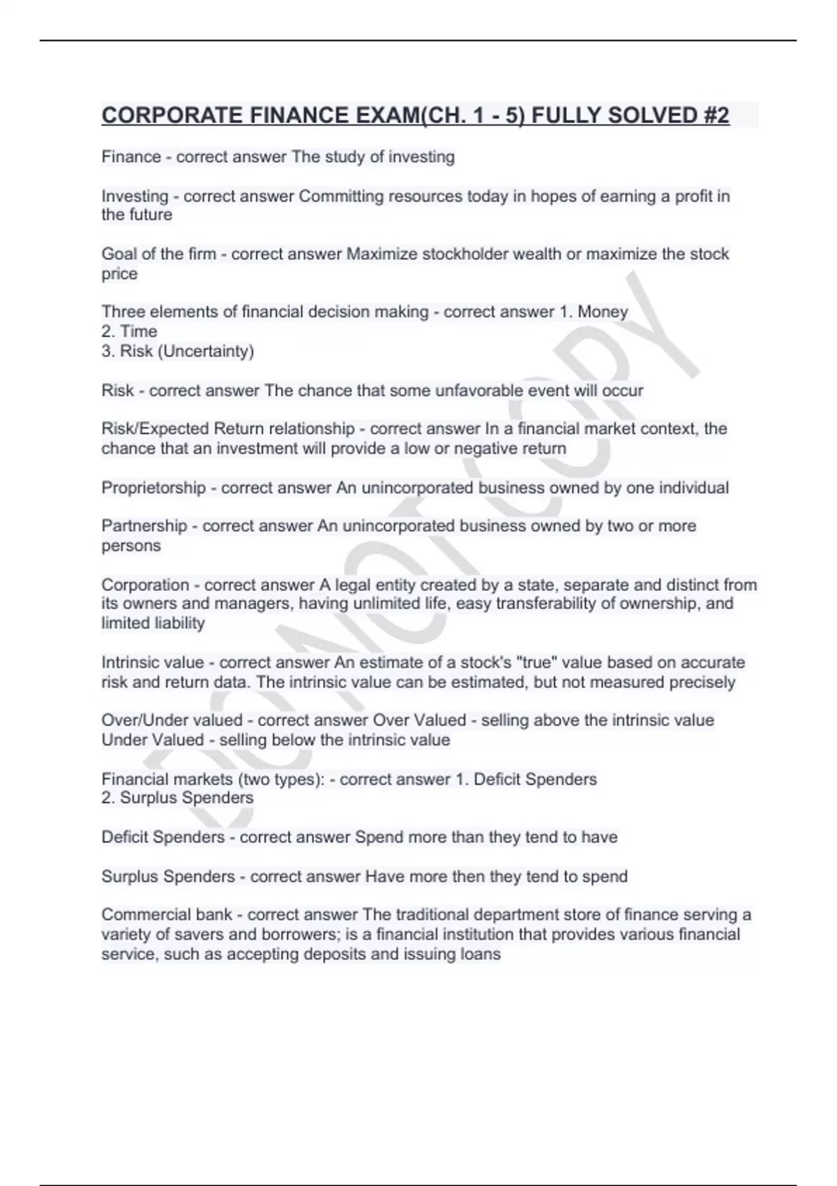 Commercial bank - correct answer The traditional department store of finance serving a
