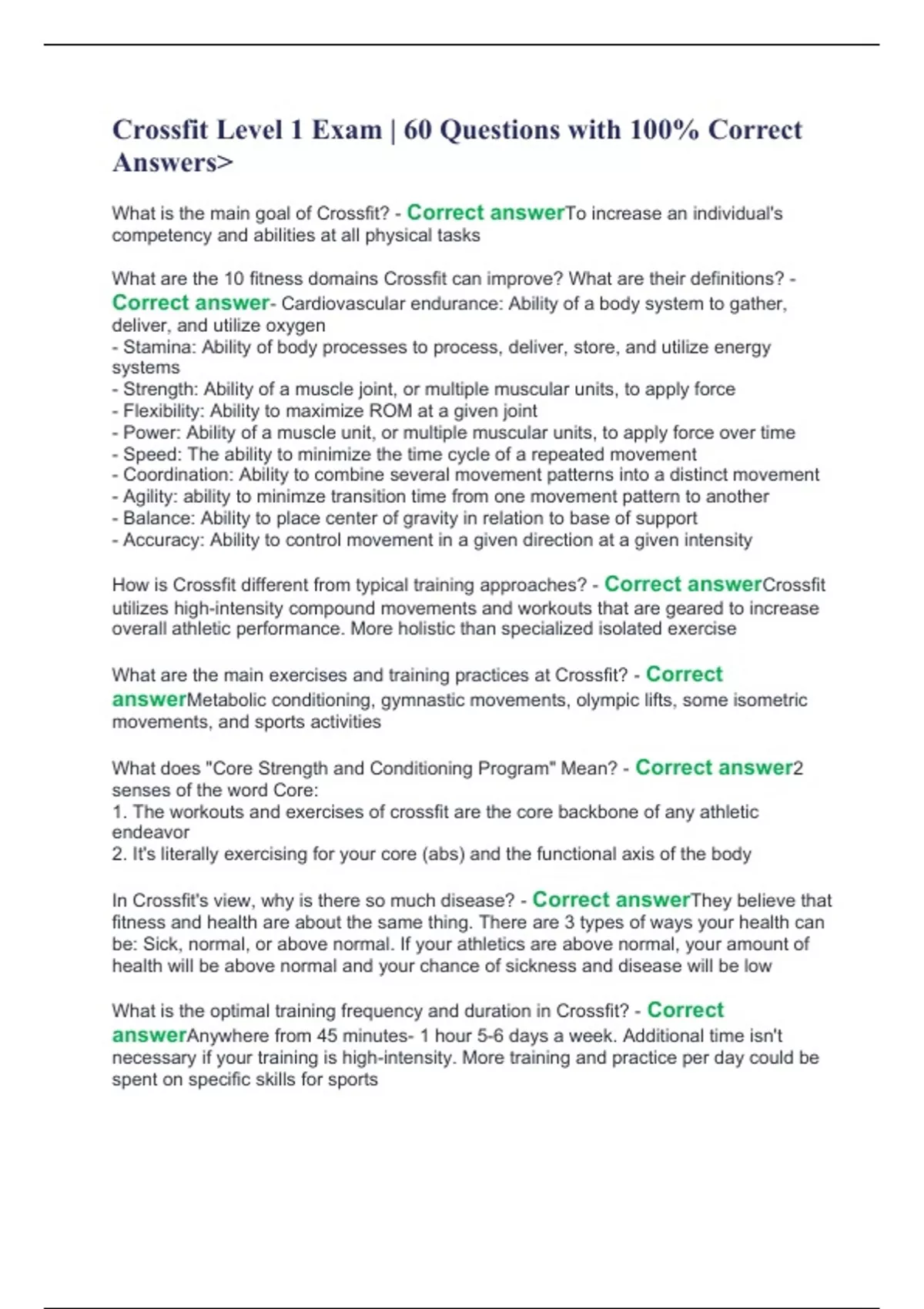 Bundle For Crossfit Level 1,2,3 Questions with 100% Correct Answers>.Bundle For Crossfit Level 1,2,3 Questions with 100% Correct Answers>.Bundle For Crossfit Level 1,2,3 Questions with 100% Correct Answers>.