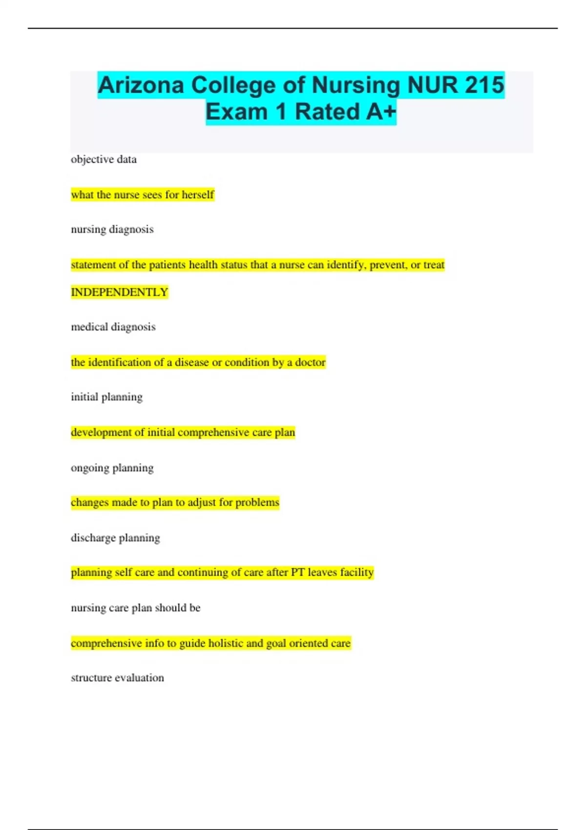 Arizona College of Nursing NUR 215 Exam 1 Rated A+