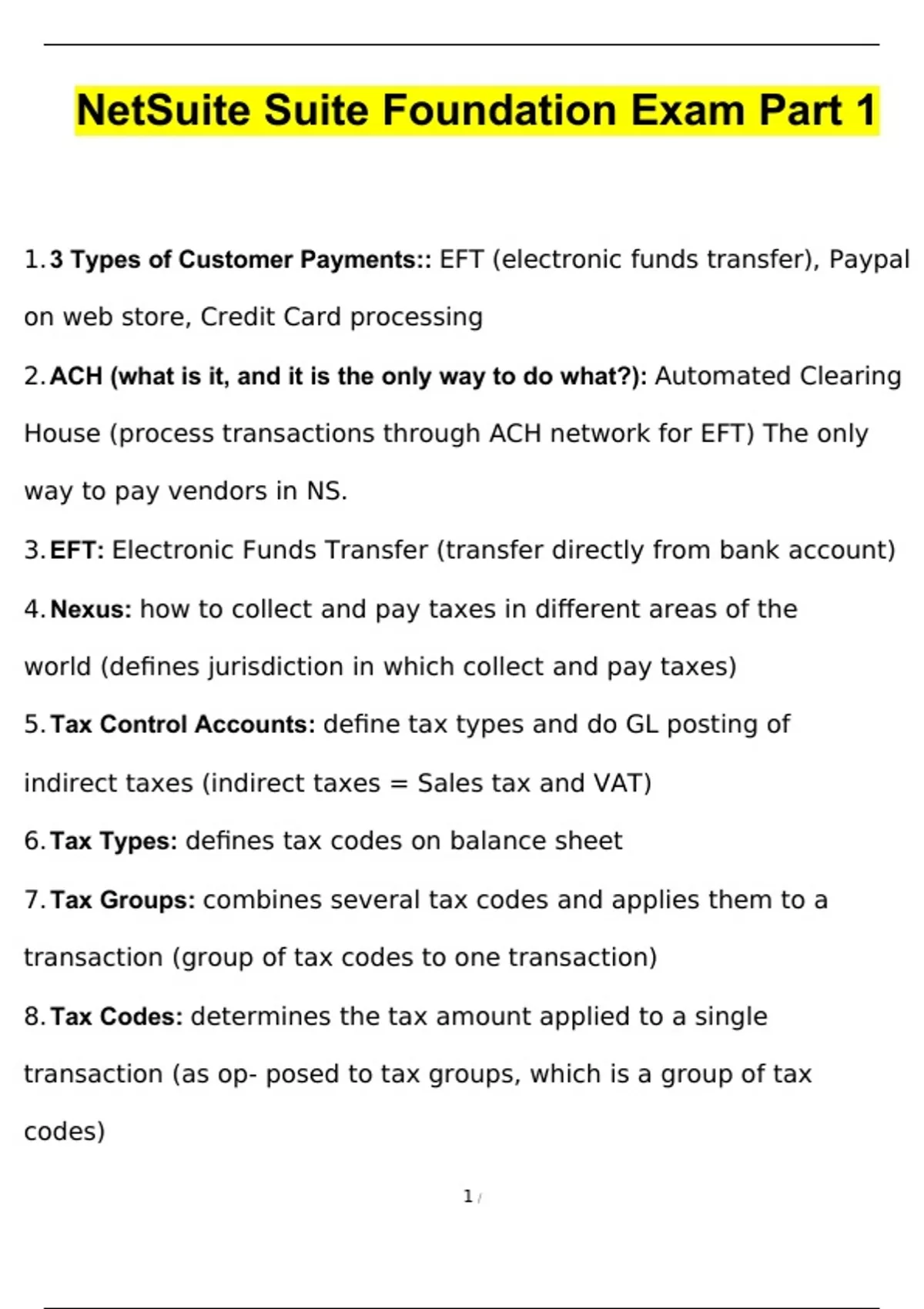 NetSuite SuiteFoundation Exam Part 1 (2024) Newest Questions and Answers (Verified Answers)