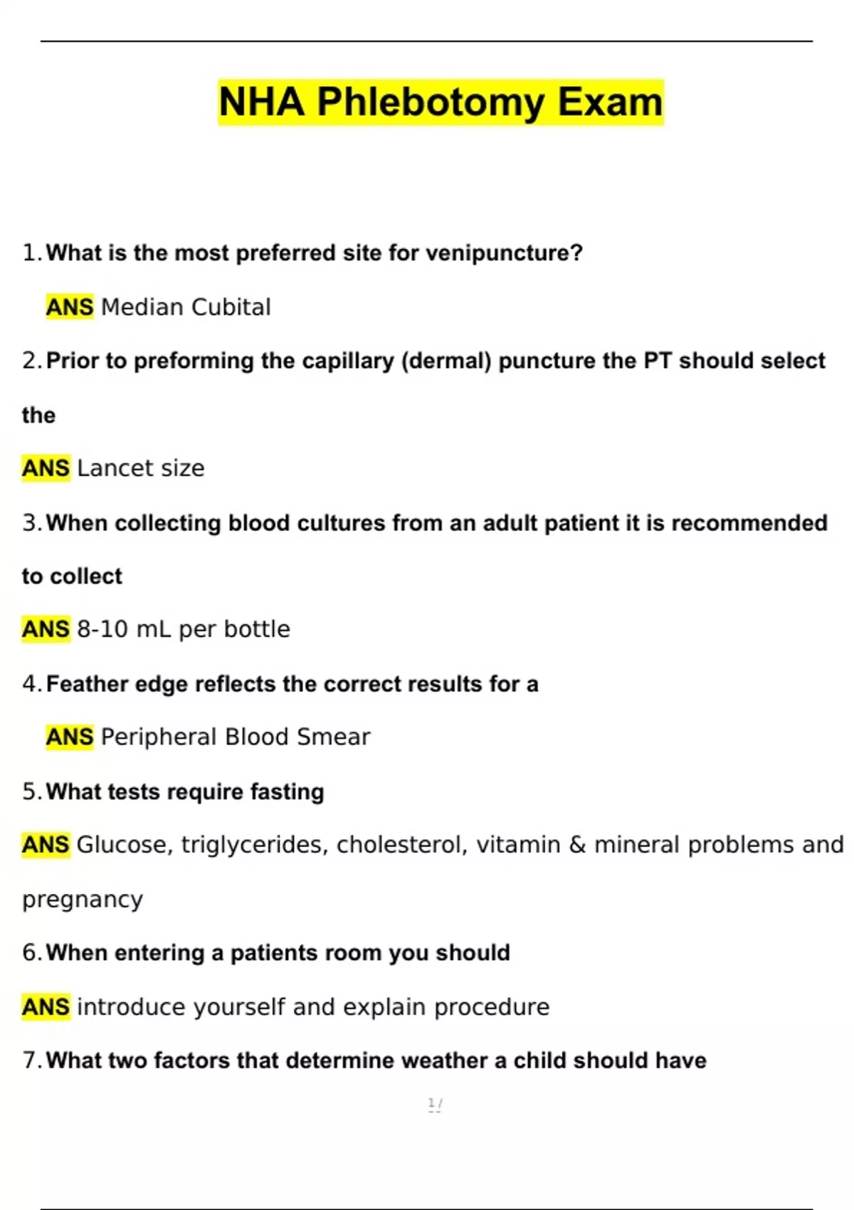 NHA Phlebotomy Exam 2024 Newest Questions and Answers (Verified Answers)