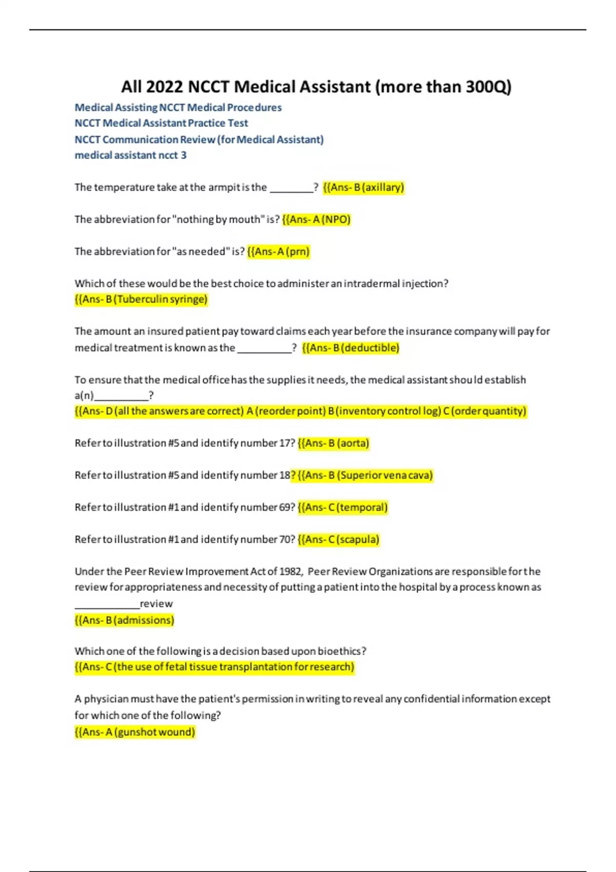 All 2022 NCCT Medical Assistant (more than 300Q)
