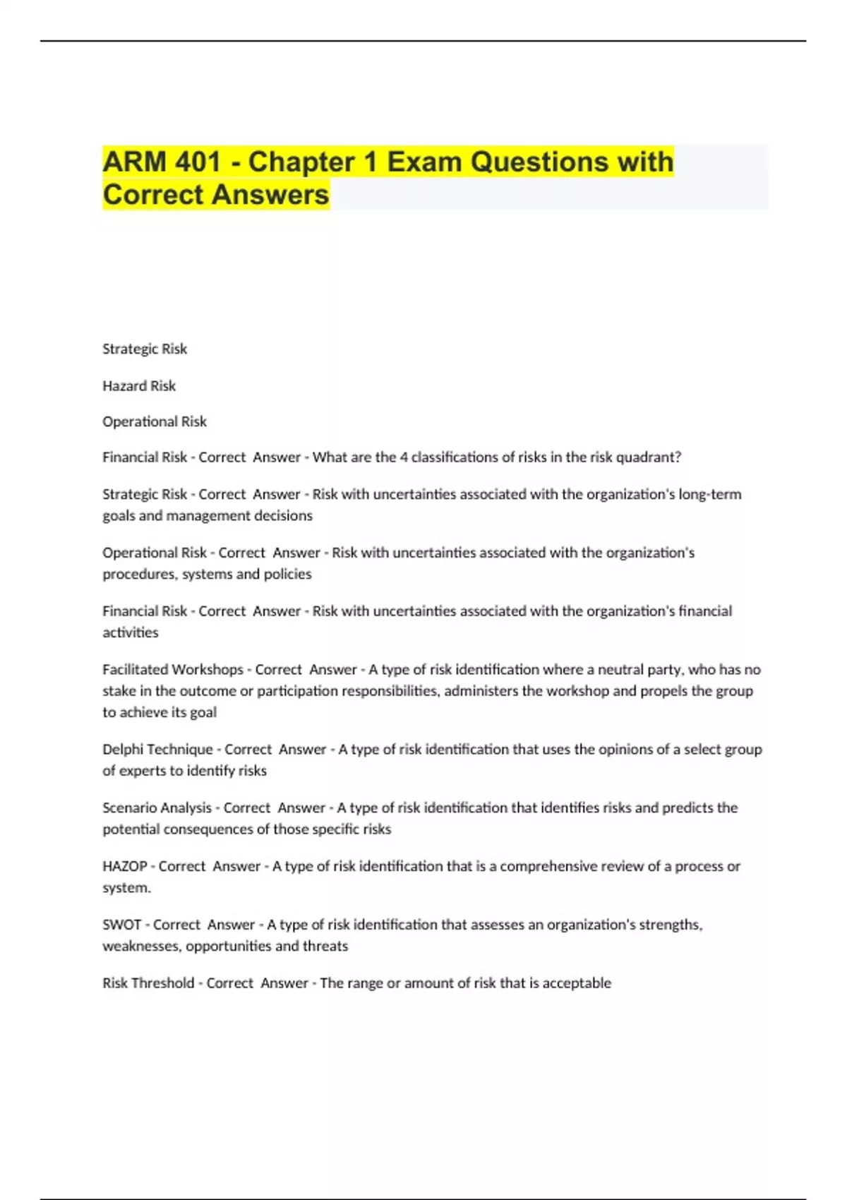 arm 401 chapter 1 exam questions with correct an