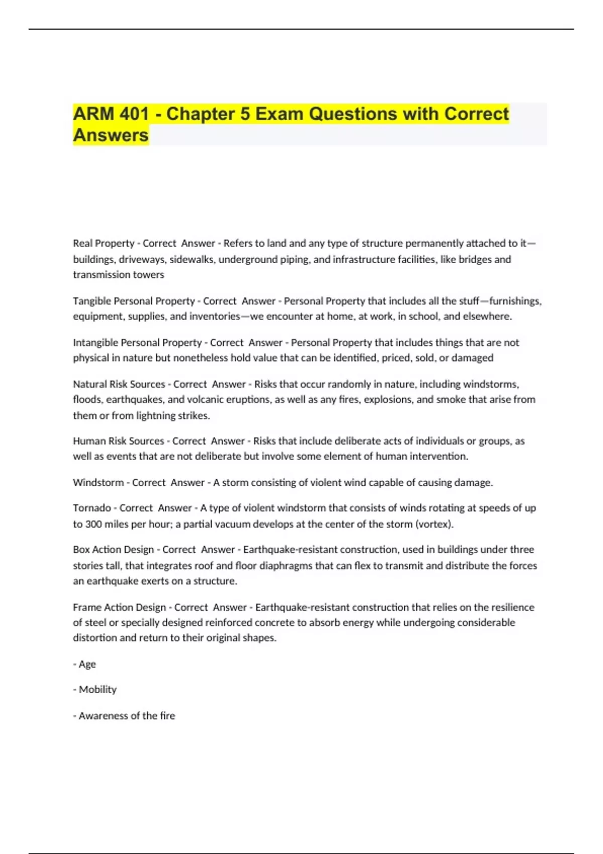 ARM 401 - Chapter 5 Exam Questions with Correct Answers.