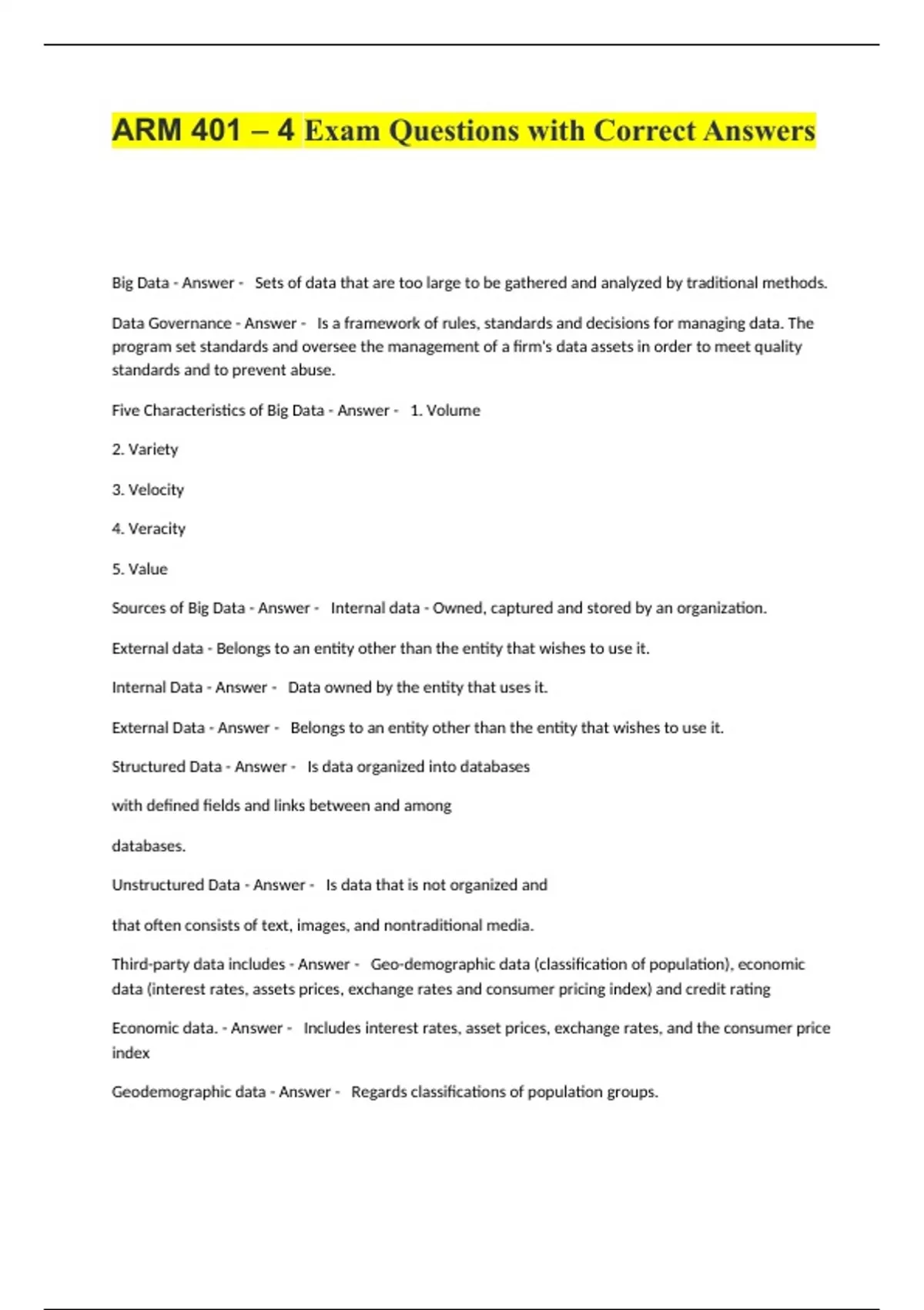 ARM 401 – 4 Exam Questions with Correct Answers.