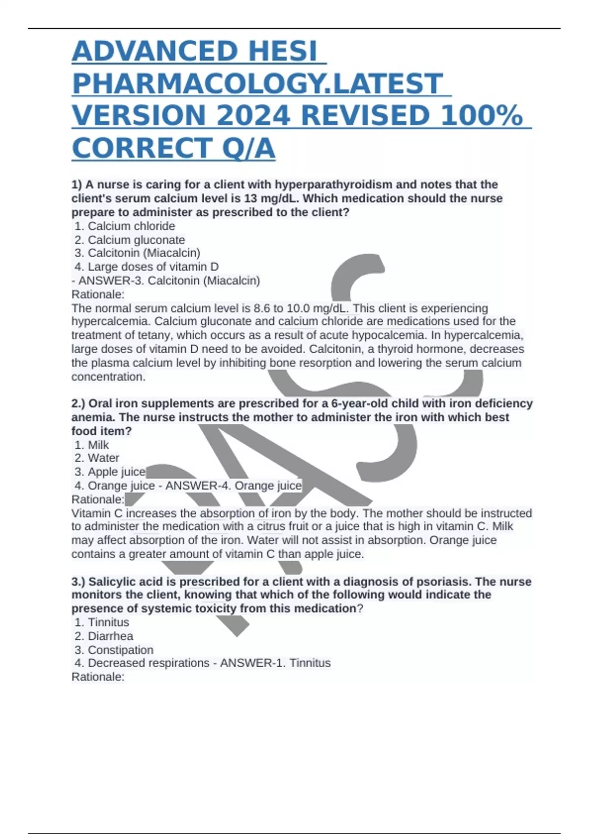 ADVANCED HESI PHARMACOLOGY.LATEST VERSION 2024 REVISED 100% CORRECT Q/A