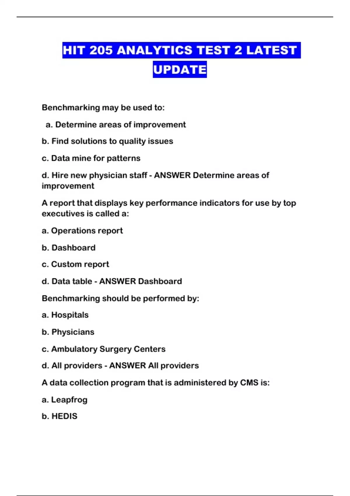 HIT 205 ANALYTICS TEST 2 LATEST UPDATE