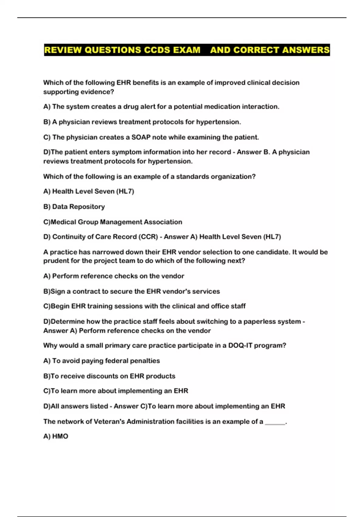 REVIEW QUESTIONS CCDS EXAM AND CORRECT ANSWERS