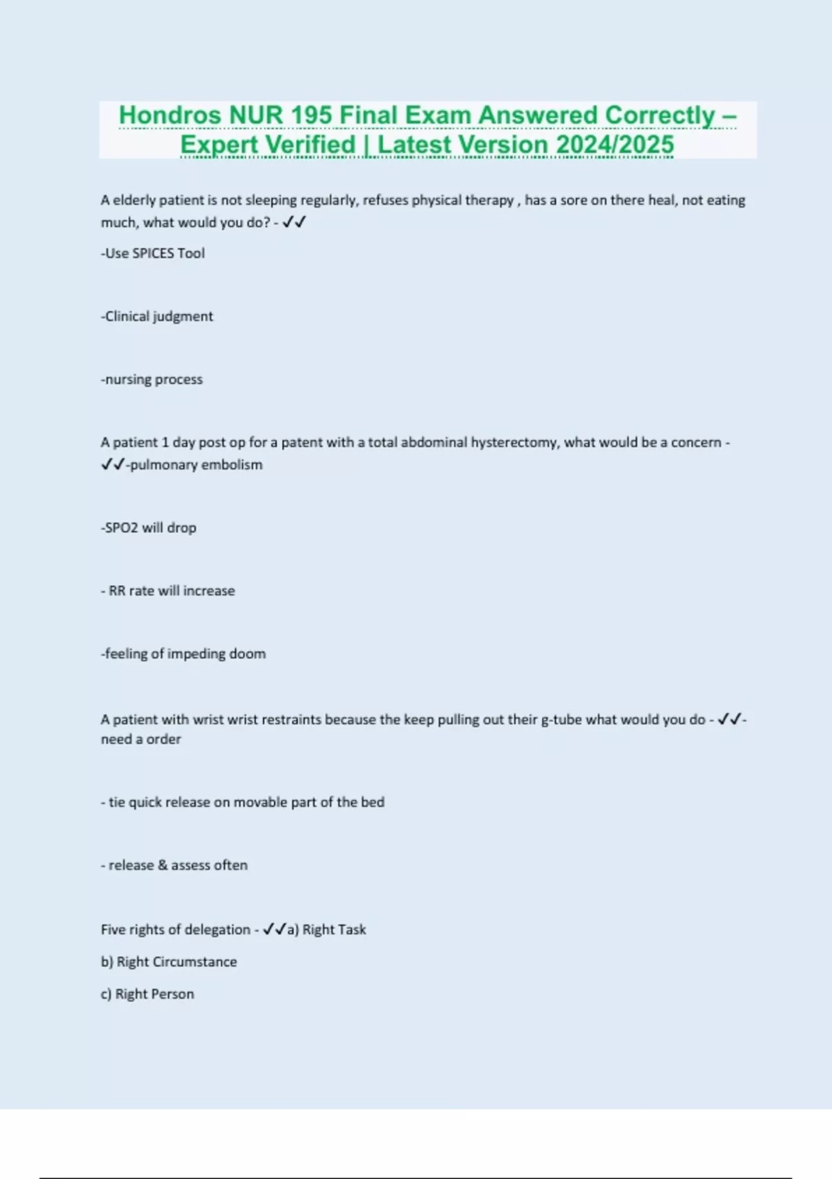 Hondros NUR 195 Final Exam Answered Correctly – Expert Verified | Latest Version 2024/2025