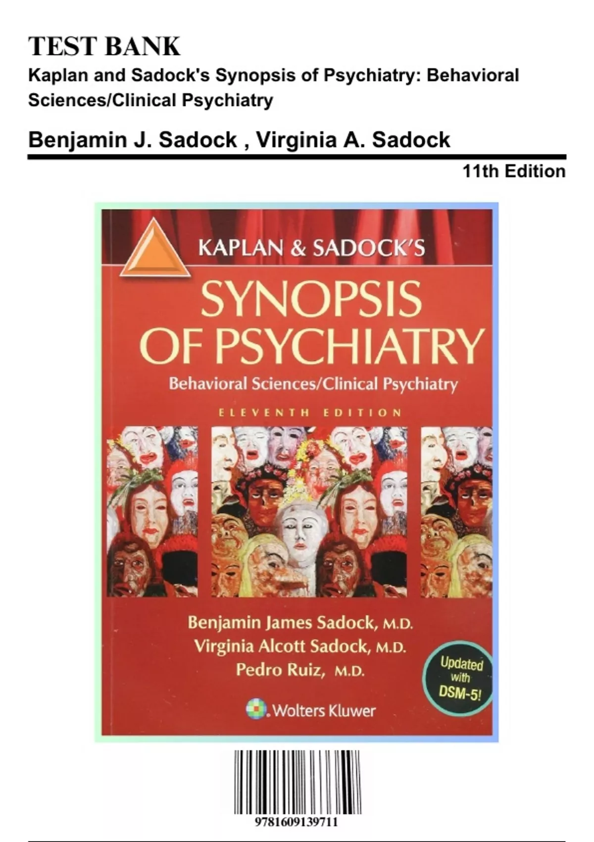 Test Bank for Kaplan and Sadock's Synopsis of Psychiatry: Behavioral Sciences/Clinical Psychiatry, 11th Edition by Sadock, 9781609139711, Covering Chapters 1-37 | Includes Rationales