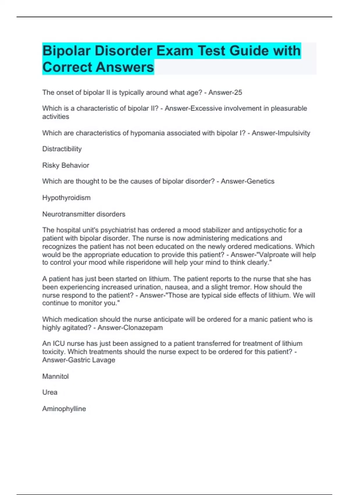 nurse respond to the patient? - Answer-"Those are typical side effects of lithium. We will