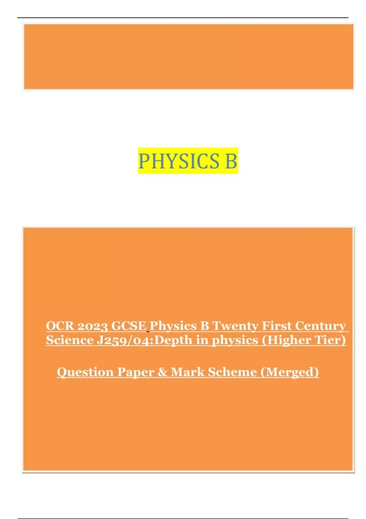 OCR 2023 GCSE Physics B Twenty First Century Science J259/04:Depth in physics (Higher Tier) Question Paper & Mark Scheme (Merged)