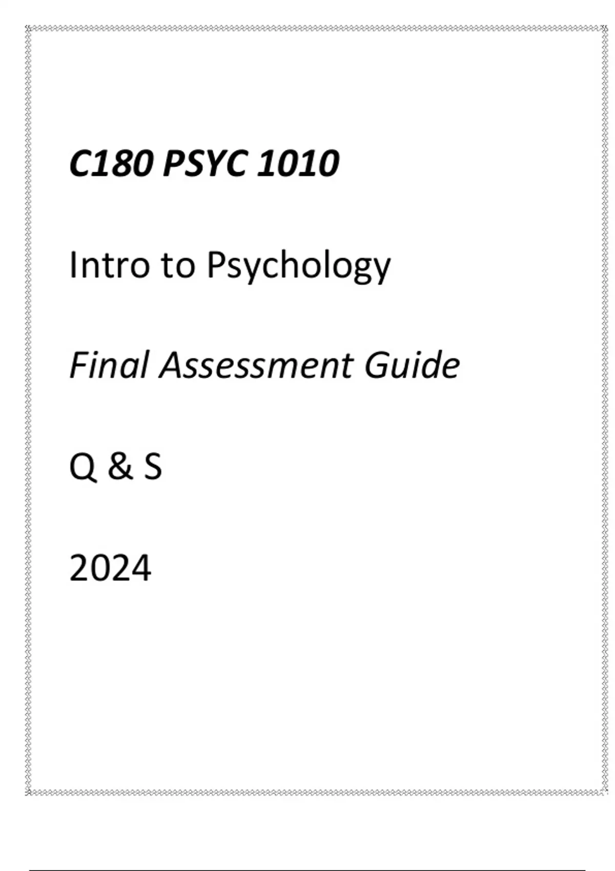 (WGU C180) PSYC 1010 Introduction to Psychology Final Assessment Guide Q & S 2024(WGU C180) PSYC 1010 Introduction to Psychology Final Assessment Guide Q & S 2024