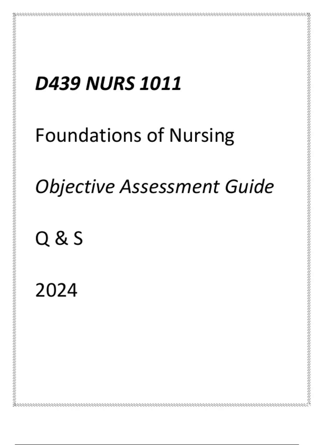 (WGU D439) NURS 1011 Foundations of Nursing Objective Assessment Guide Q & S 2024(WGU D439) NURS 1011 Foundations of Nursing Objective Assessment Guide Q & S 2024(WGU D439) NURS 1011 Foundations of Nursing Objective Assessment Guide Q & S 2024