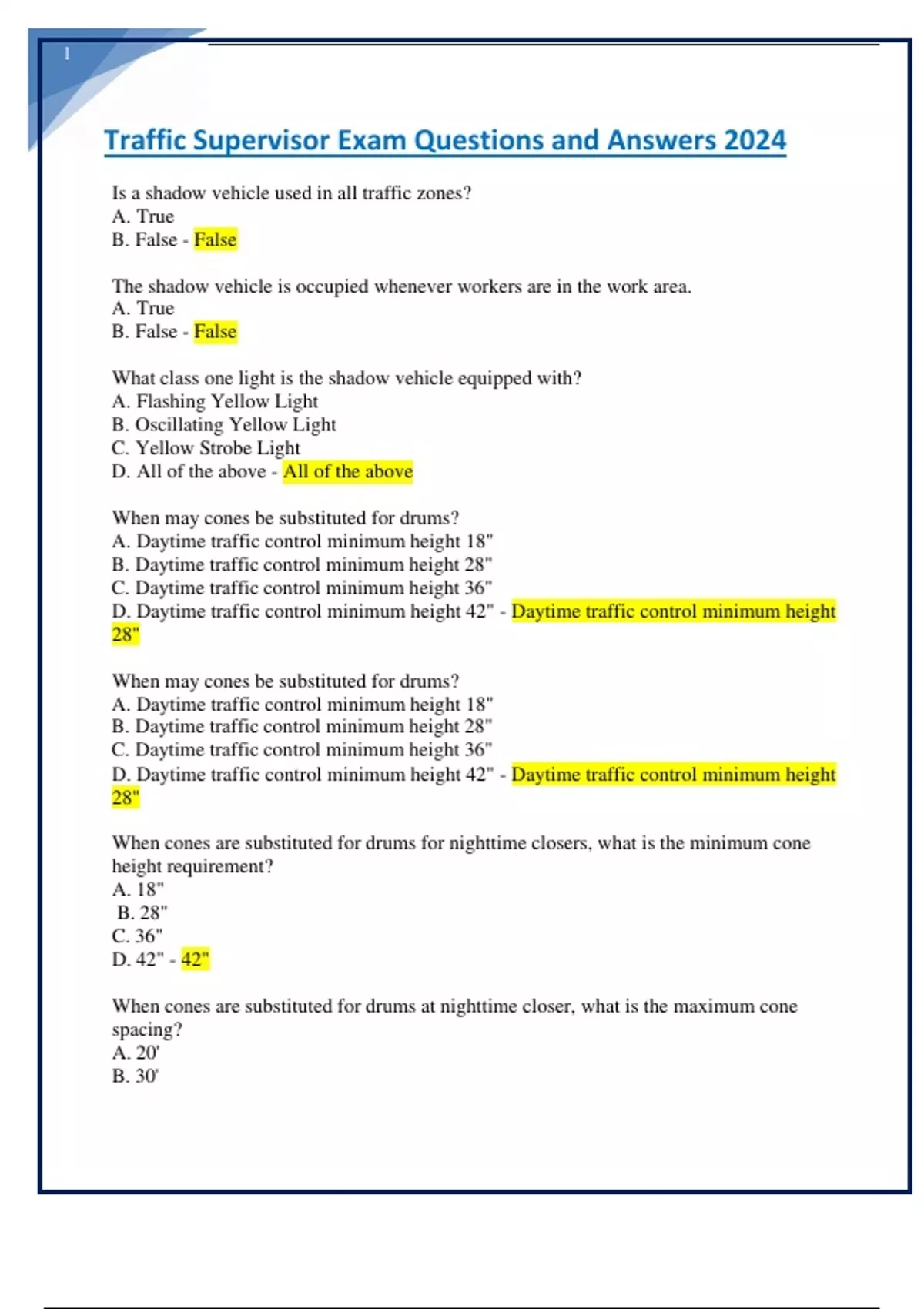 traffic supervisor exam questions and answers 2024