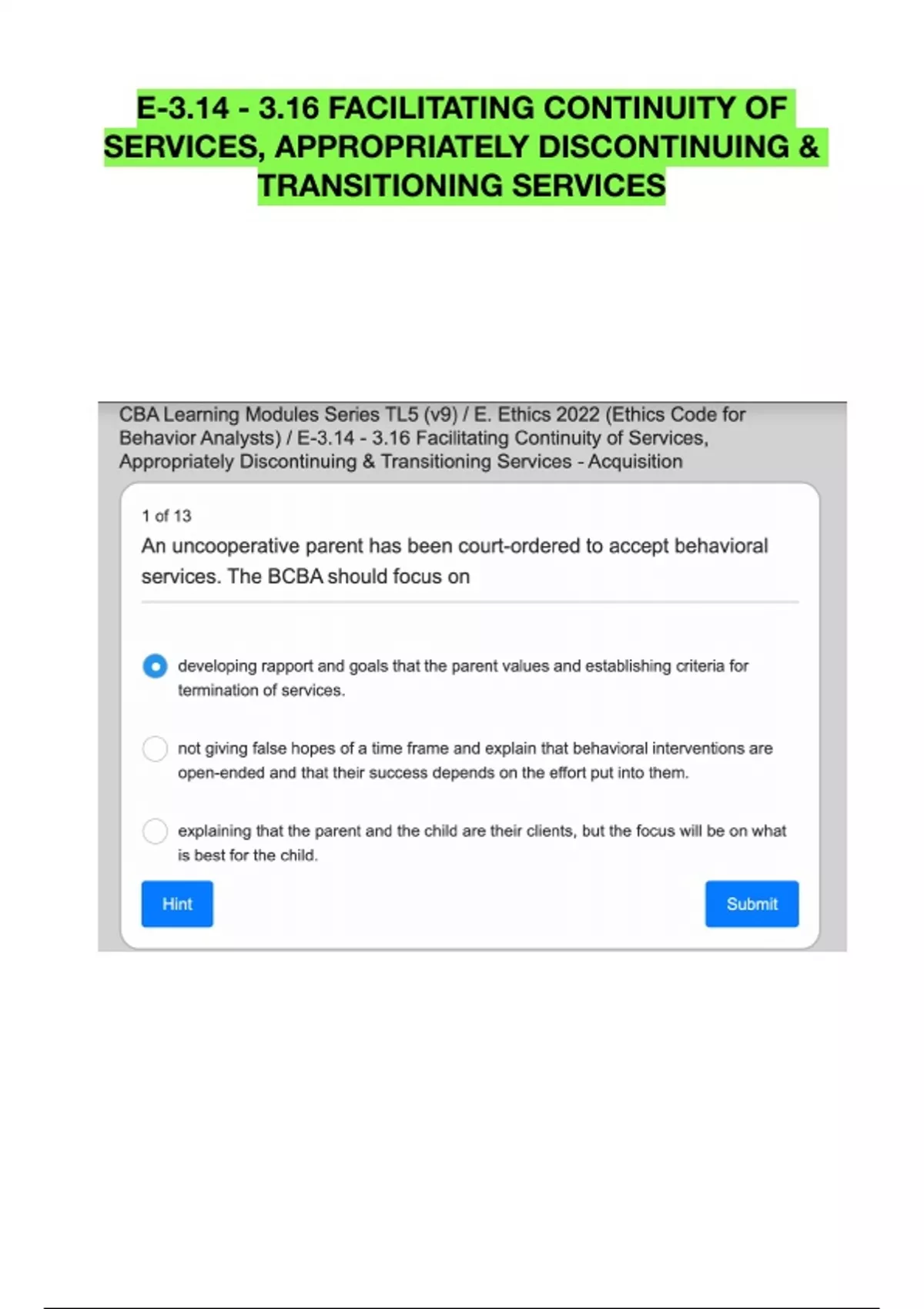 E-3.14 - 3.16 Facilitating Continuity of Services, Appropriately Discontinuing & Transitioning Services
