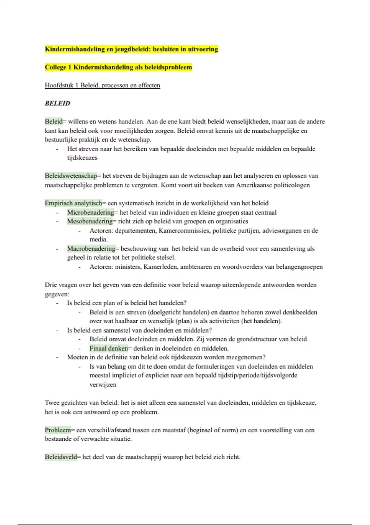 Beleidstheorie= geheel van veronderstellingen waarop een beleid berust. Komen aan bod in de