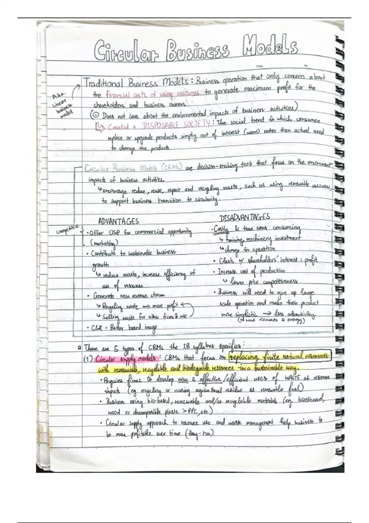 Detailed business notes that covers Unit 2-5 of the IB Business Management course. Includes tool kits, layouts out of accounting tools, financial analysis are explained and labeled. All units such as Business and Environment, HR, Finance, Marketing and Operations are included