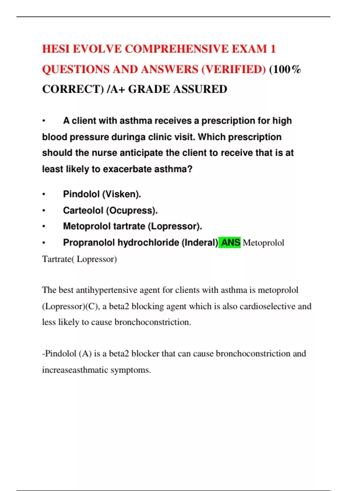 HESI EVOLVE COMPREHENSIVE EXAM 1 QUESTIONS AND ANSWERS (VERIFIED) (100% CORRECT) A+ GRADE ASSURED