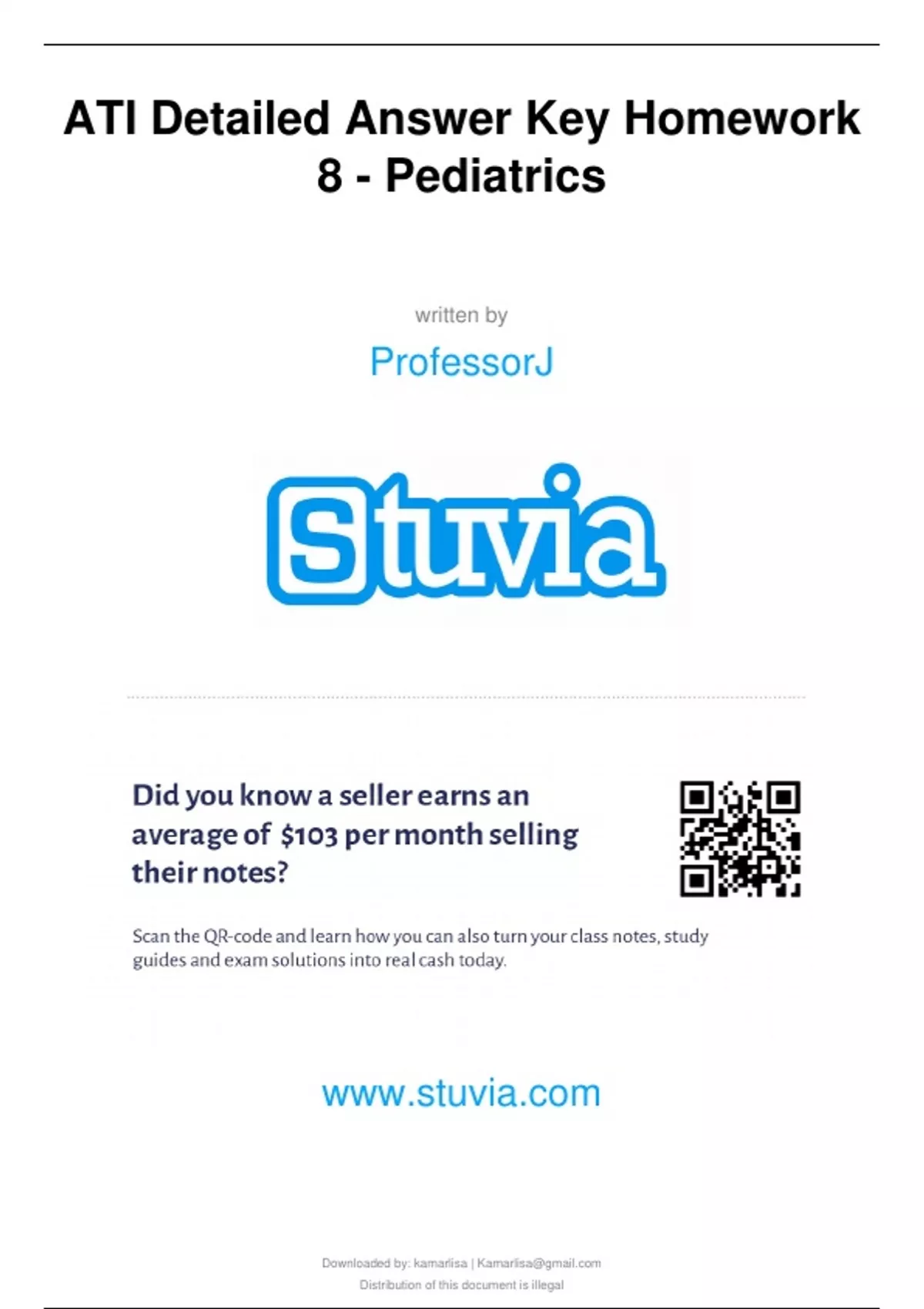 ATI Detailed Answer Key Homework 8 - Pediatrics