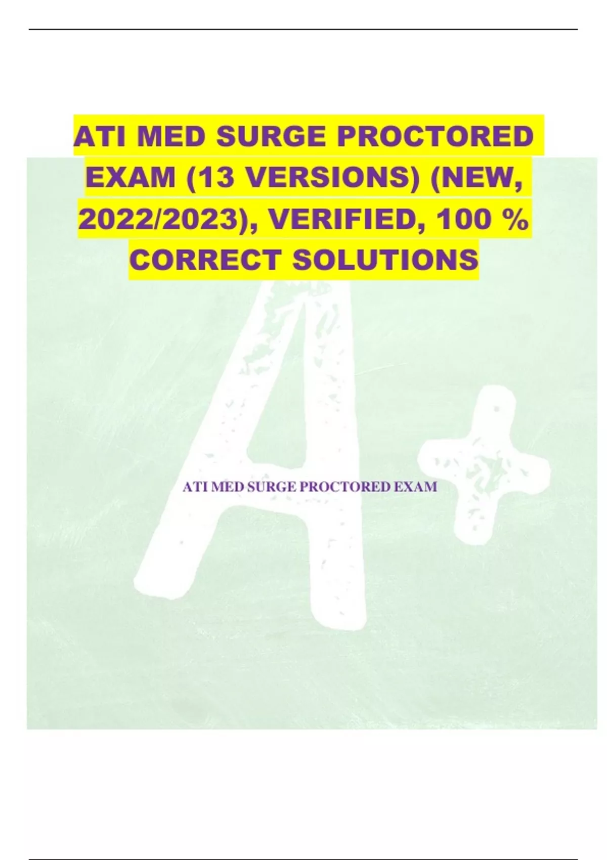 ATI MED SURGE PROCTORED EXAM (13 VERSIONS) (NEW, 2022/2023), VERIFIED, 100 % CORRECT SOLUTIONS