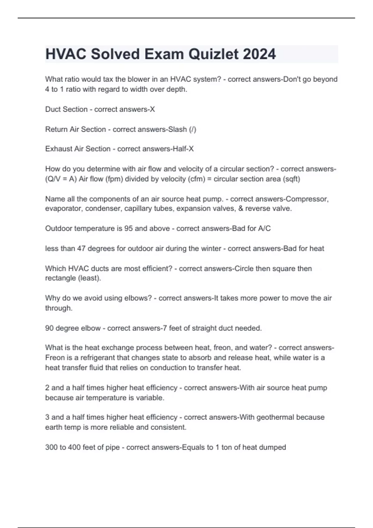 HVAC Solved Exam Quizlet 2024