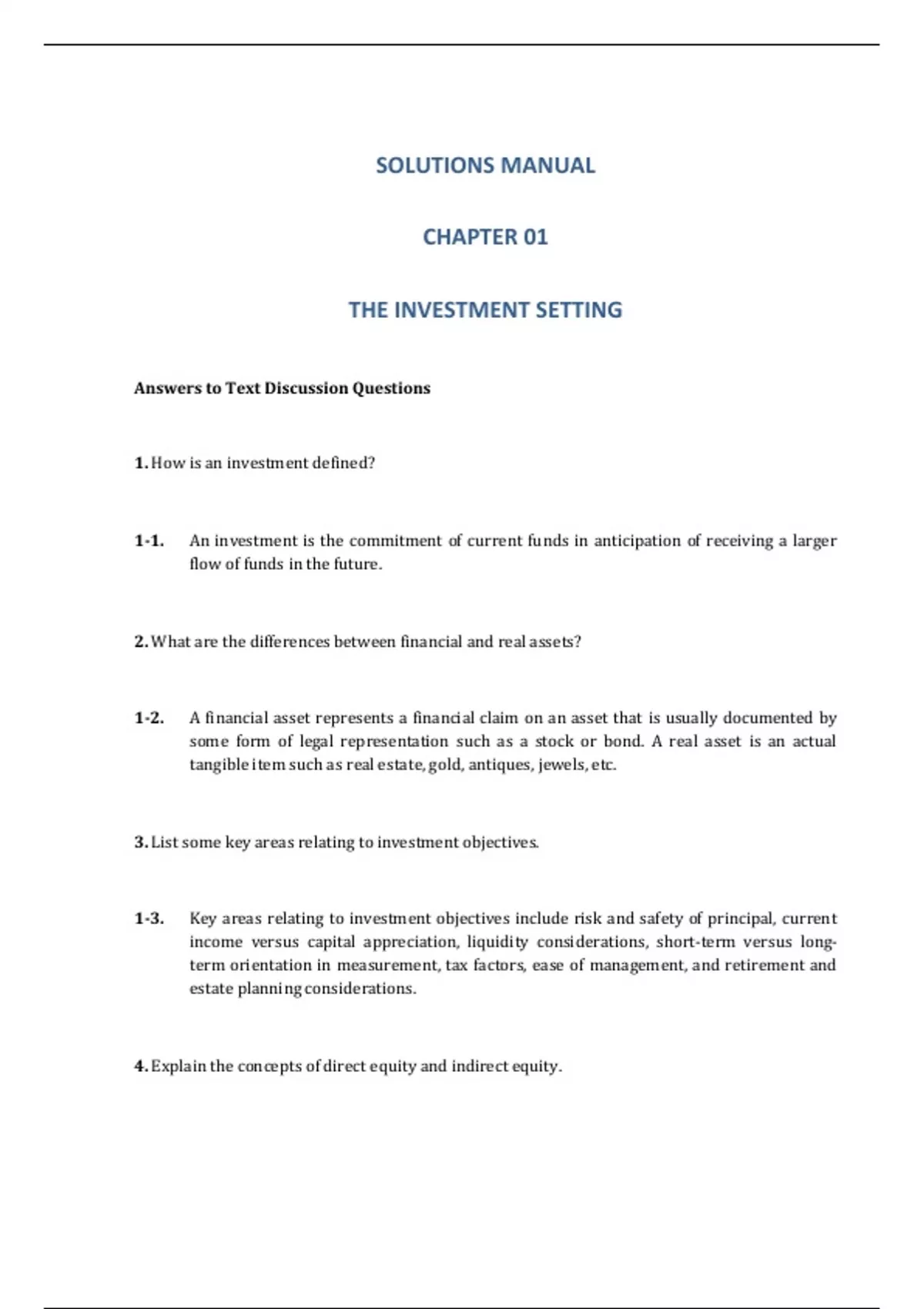,1-4. Direct equity represents actual ownership of shares in a firm or the instruments that can