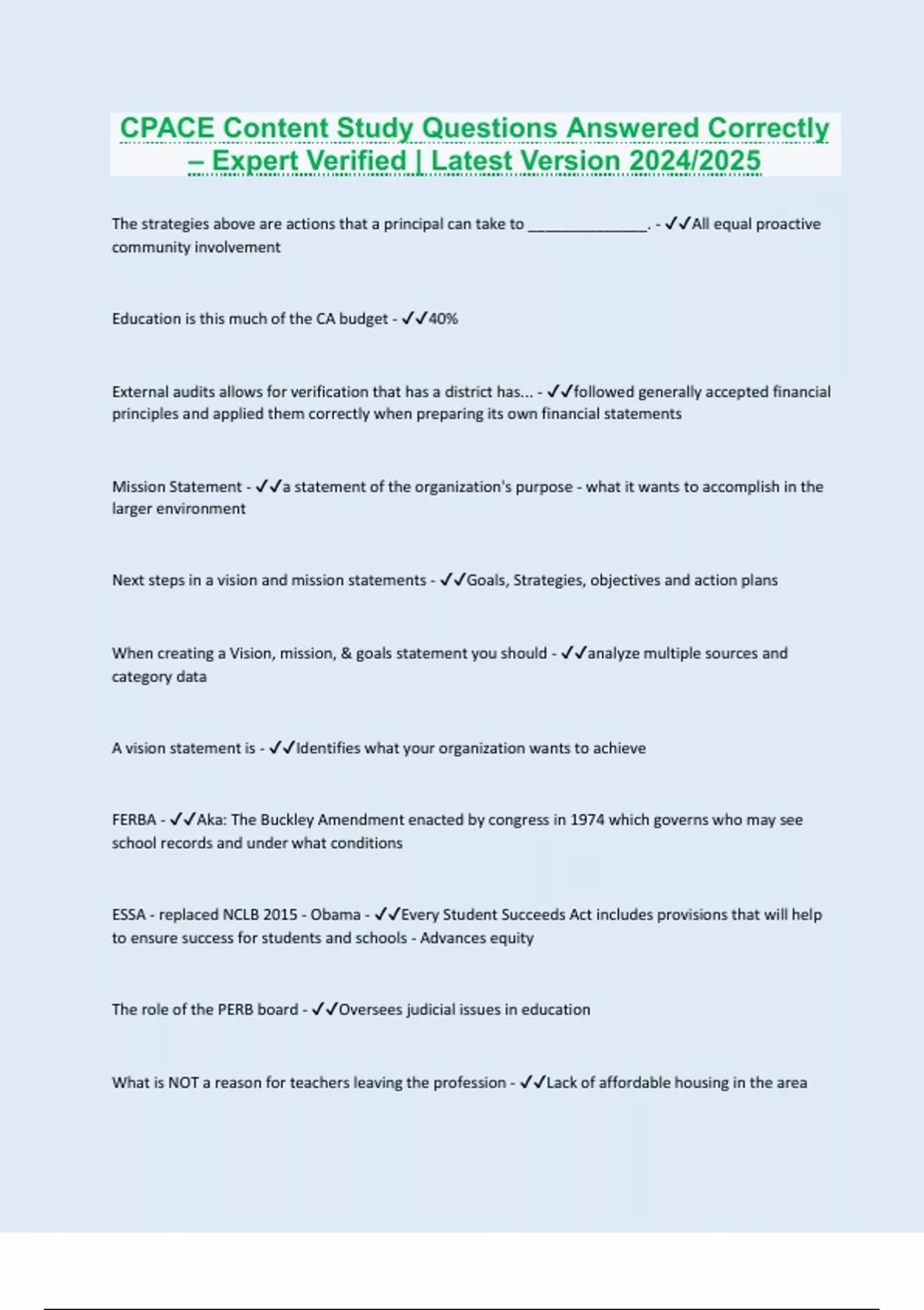 CPACE Content Study Questions Answered Correctly – Expert Verified | Latest Version 2024/2025