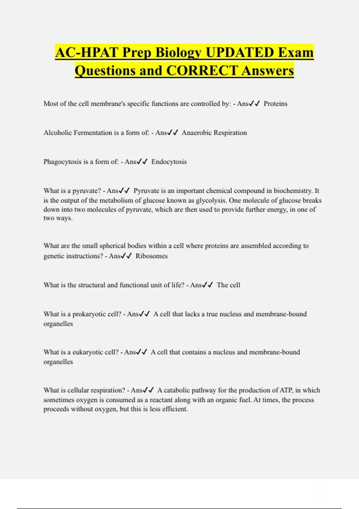 AC-HPAT Prep Biology UPDATED Exam Questions and CORRECT Answers