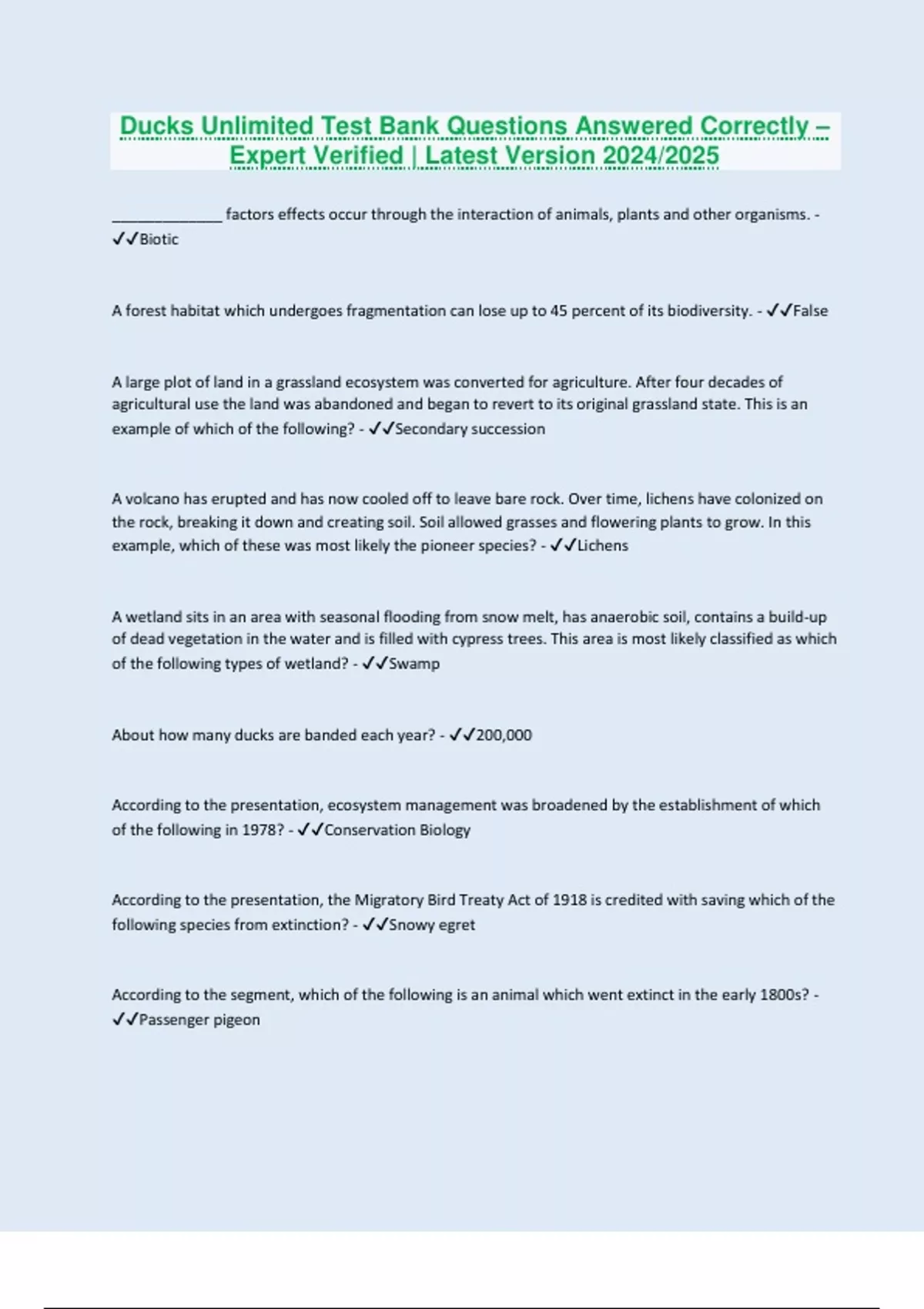Ducks Unlimited Test Bank Questions Answered Correctly – Expert Verified | Latest Version 2024/2025