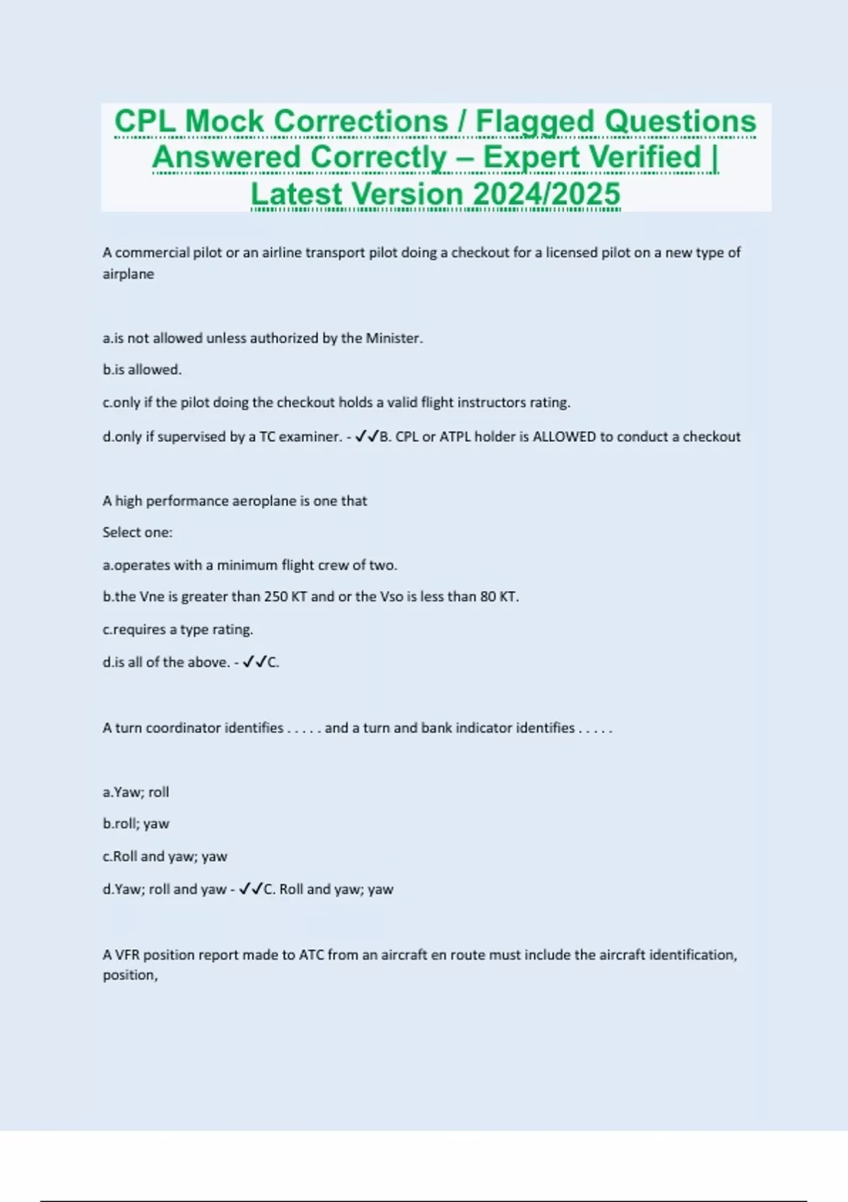CPL Mock Corrections / Flagged Questions Answered Correctly – Expert Verified | Latest Version 2024/2025