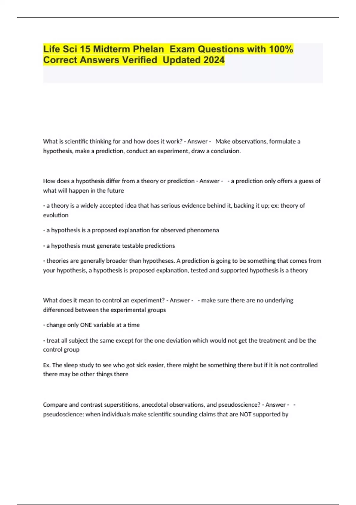 Life Sci 15 Midterm Phelan Exam Questions with 100% Correct Answers Verified Updated 2024
