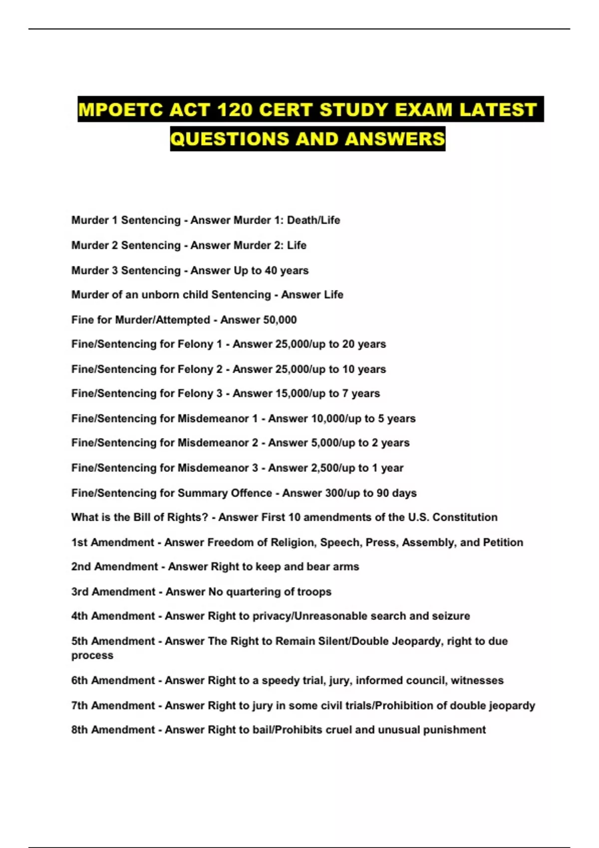 MPOETC ACT 120 CERT STUDY EXAM LATEST QUESTIONS AND ANSWERS...