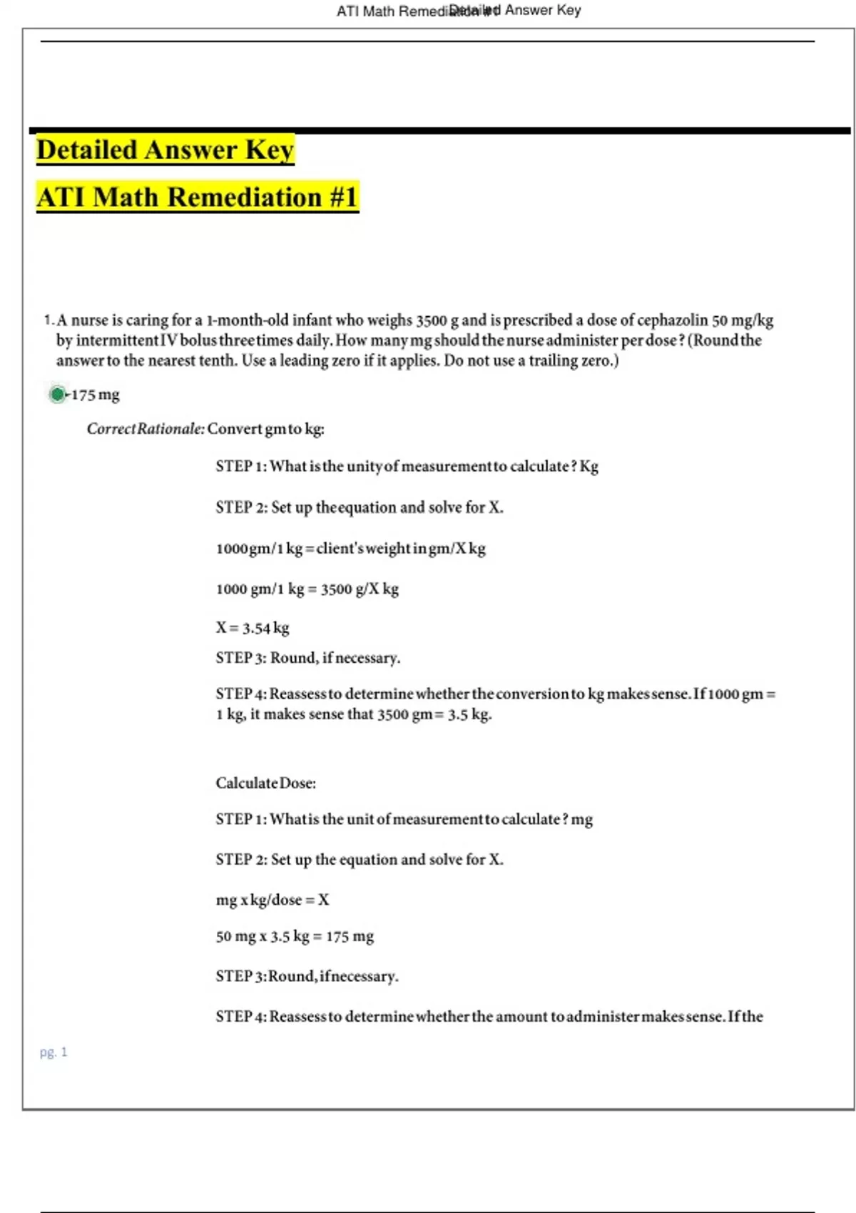 This document provides a complete and detailed answer key for ATI Mathematics Remediation, covering essential nursing math skills such as dosage calculations, conversions, IV flow rates, and dimensional analysis. Each answer is accompanied by step-by-step explanations to support understanding and mastery of core concepts required for safe medication administration. Suitable for students preparing for ATI assessments or reinforcing foundational math skills.