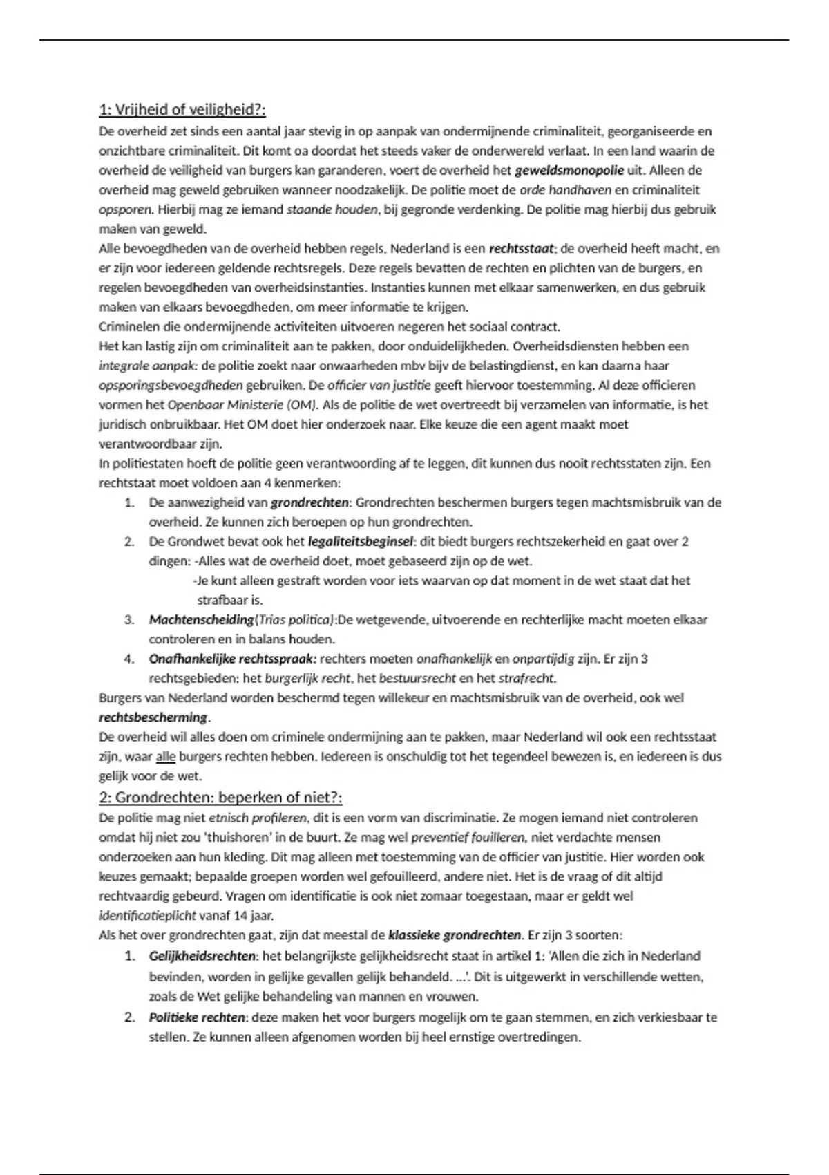 2. De Grondwet bevat ook het legaliteitsbeginsel: dit biedt burgers rechtszekerheid en gaat over 2